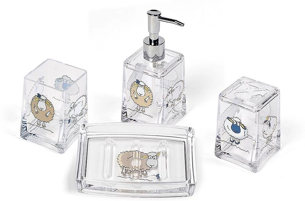 Дозатор для жидкого мыла Funny Sheep из прочного небьющегося многослойного акрила — стильный и практичный аксессуар для ванной комнаты или кухни.