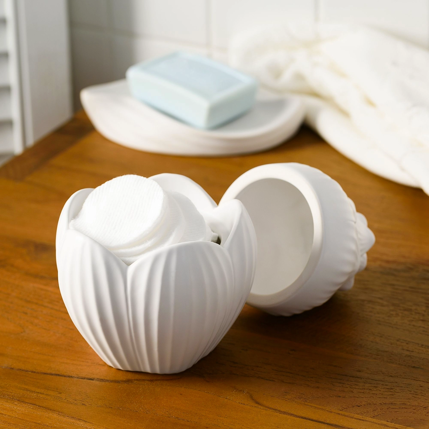 Керамический контейнер для ватных дисков для удобного и практичного хранения гигиенических принадлежностей.