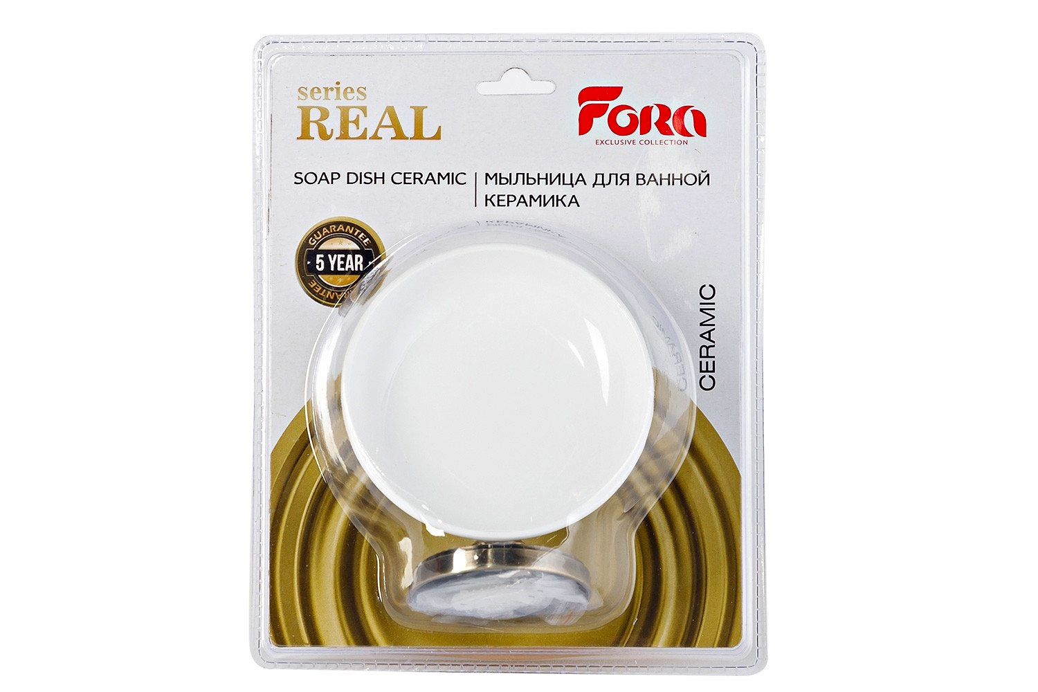 Изделие создано из керамики и высококачественного металла. Покрытие благородного бронзового цвета защищает сплав от коррозии. Мыльница «REAL» FORA прочно крепится к стене, поэтому вам не придется искать для нее место на полочке или раковине. Срок гарантии аксессуара – 5 лет! Вы будете долго наслаждаться безупречной красотой керамической мыльницы из коллекции «REAL» FORA.