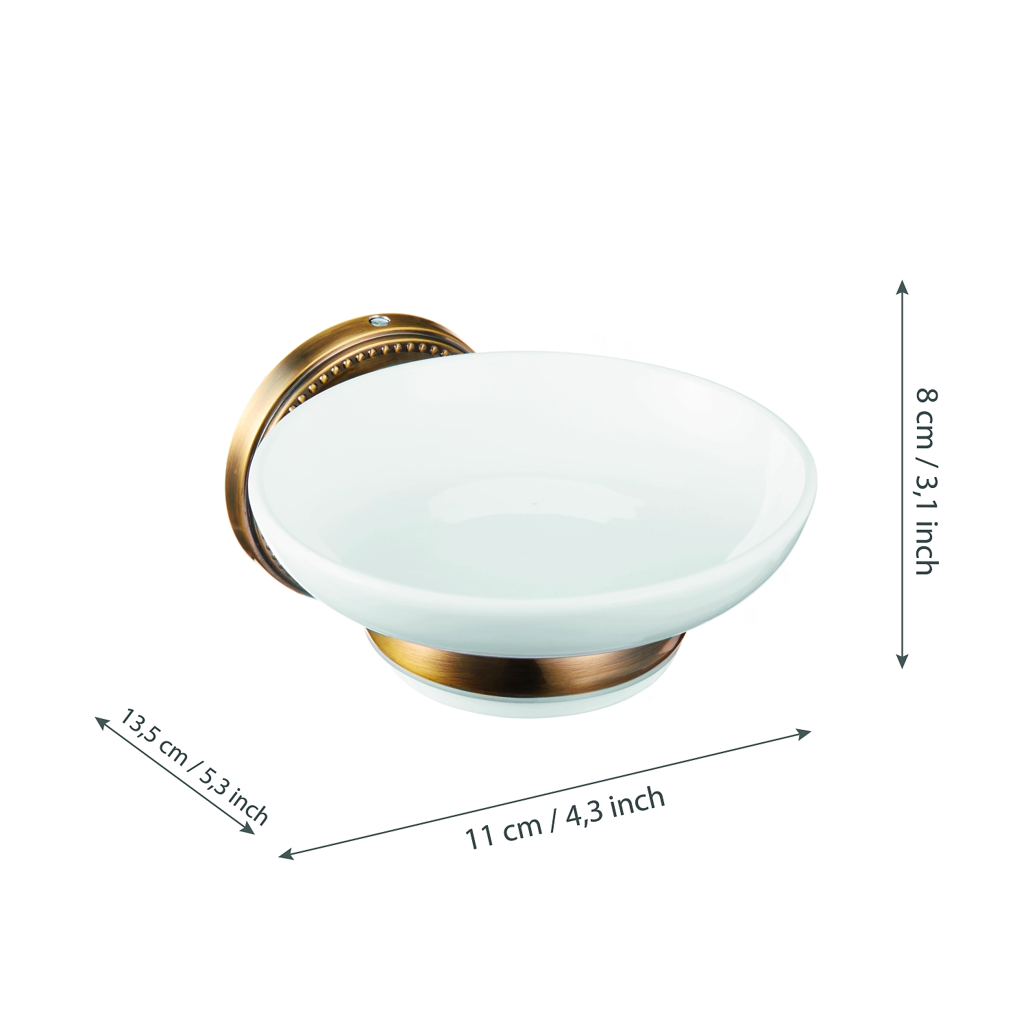 Секрет изысканного стиля ванной – дизайнерские аксессуары, которые не только выполняют свои прямые функции, но и гармонично дополняют интерьер. Идеально белая керамическая мыльница «REAL» FORA на бронзовом основании станет изысканным украшением уютной ванной комнаты в классическом стиле.