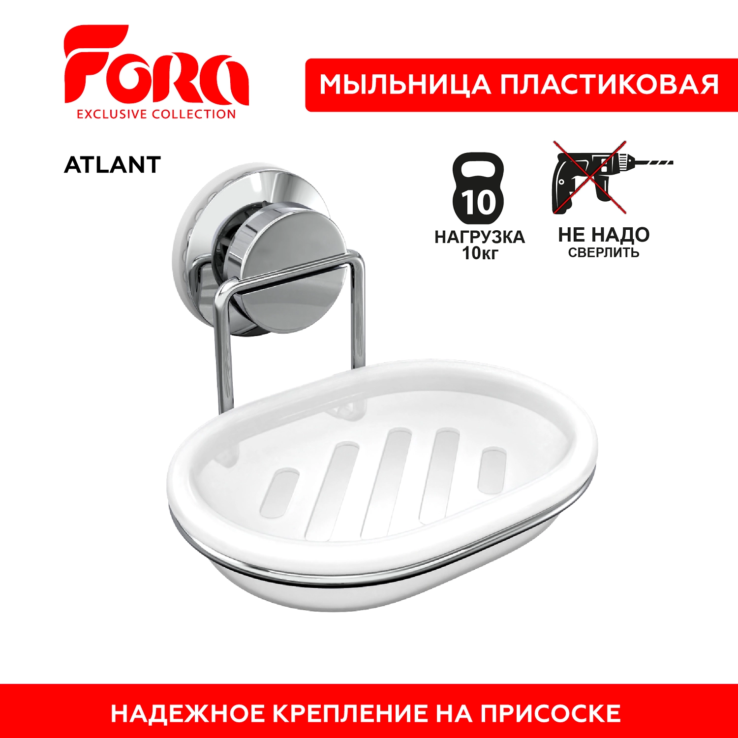 Мыльница для ванной настенная на присоске пластиковая Fora ATLANT