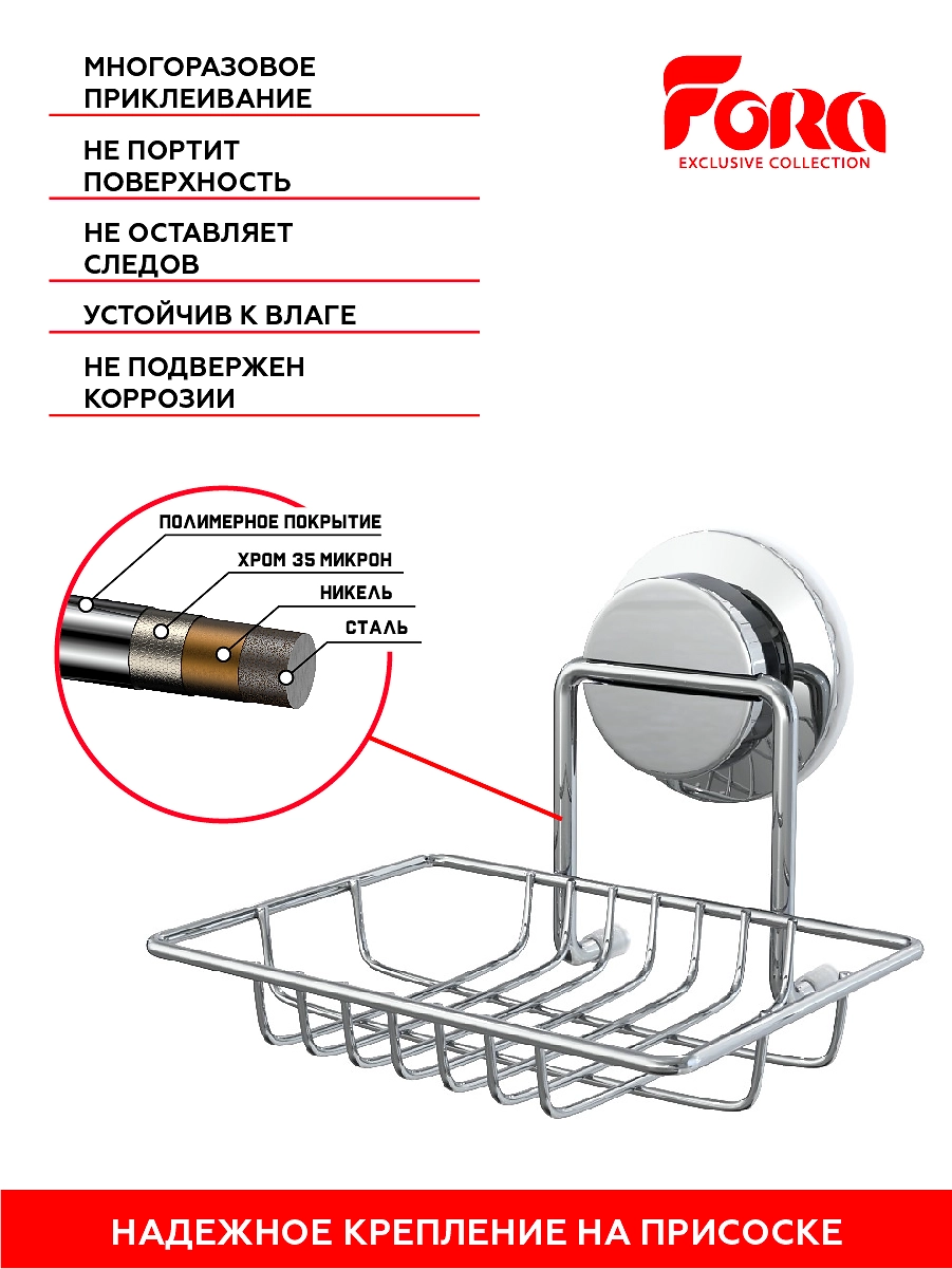 Мыльница для ванной комнаты из серии Atlant. Крепится на уникальной вакуумной присоске из натурального каучука. 100 процентная надежность крепления, выдерживает 10 кг.