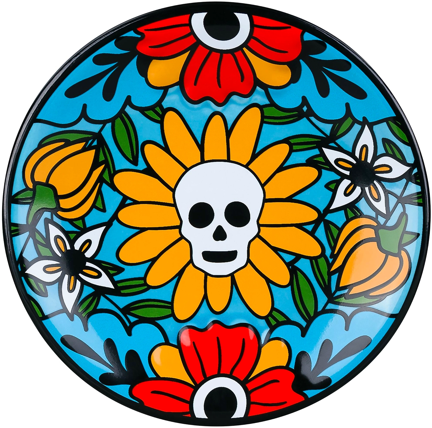 Керамическая мыльница круглой формы подходит для кускового мыла различного размера. Изделие оформлено в стилистике известного мексиканского праздника Дня Мертвых.