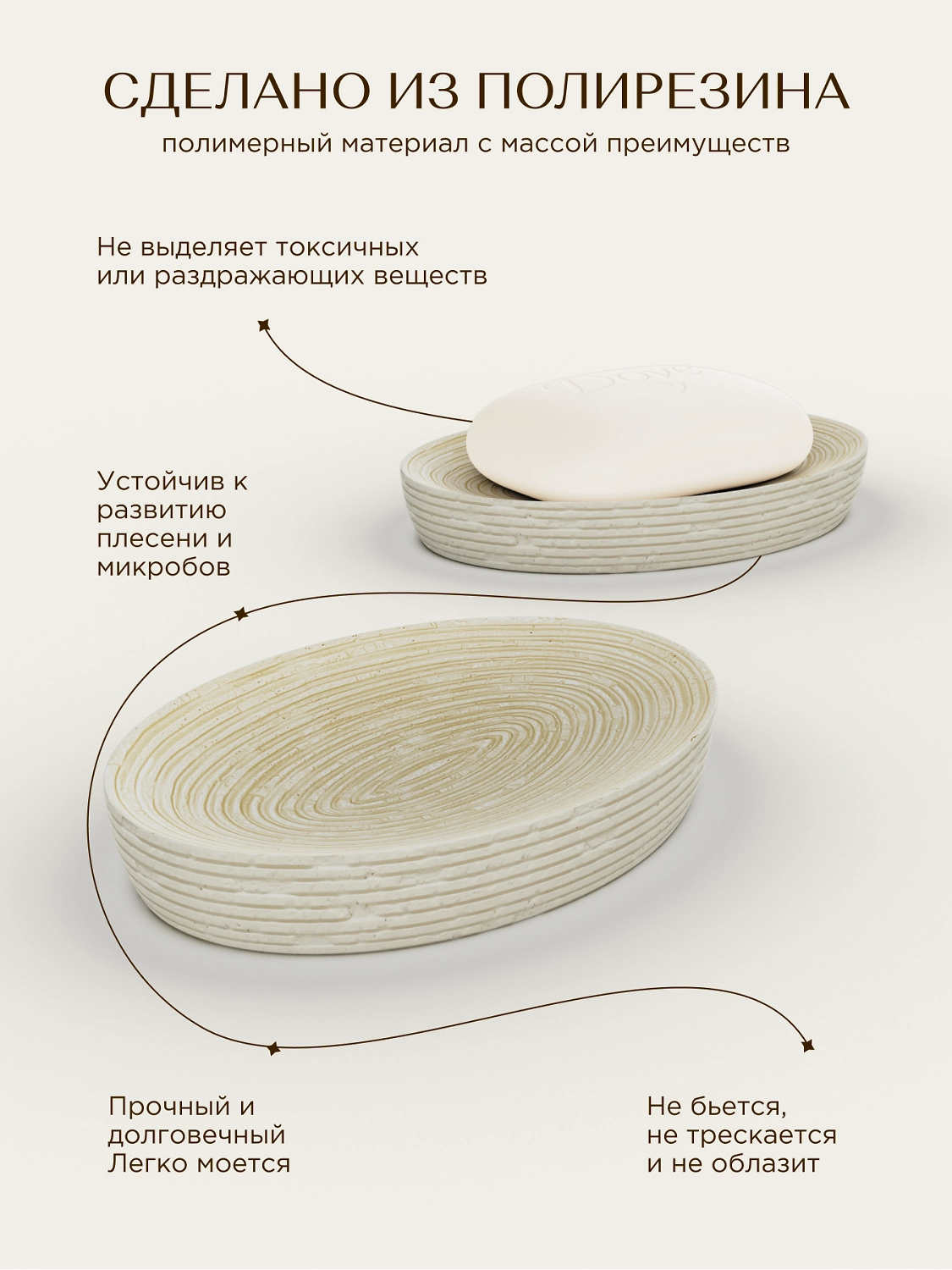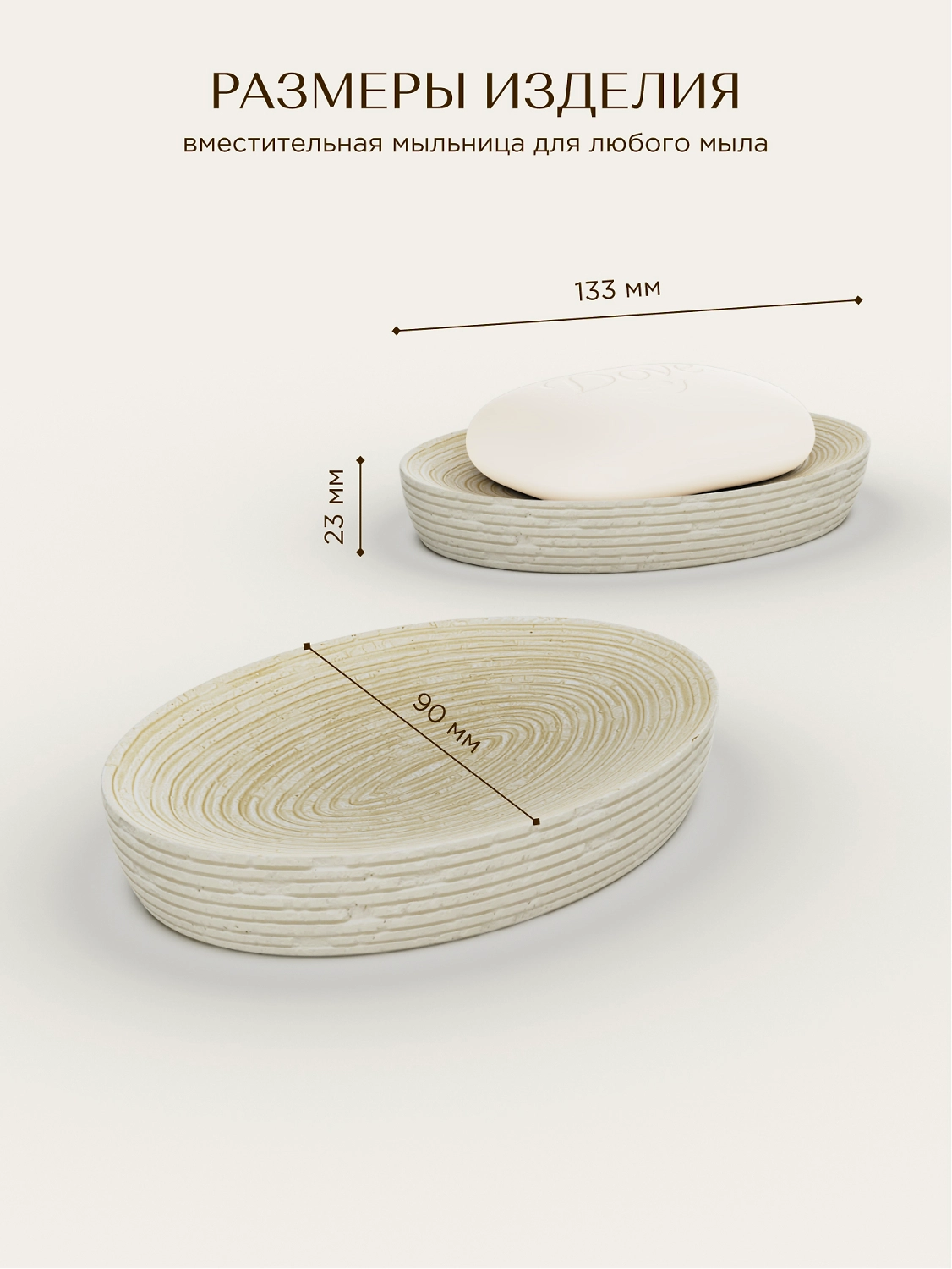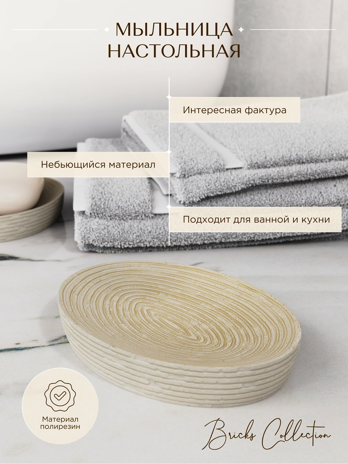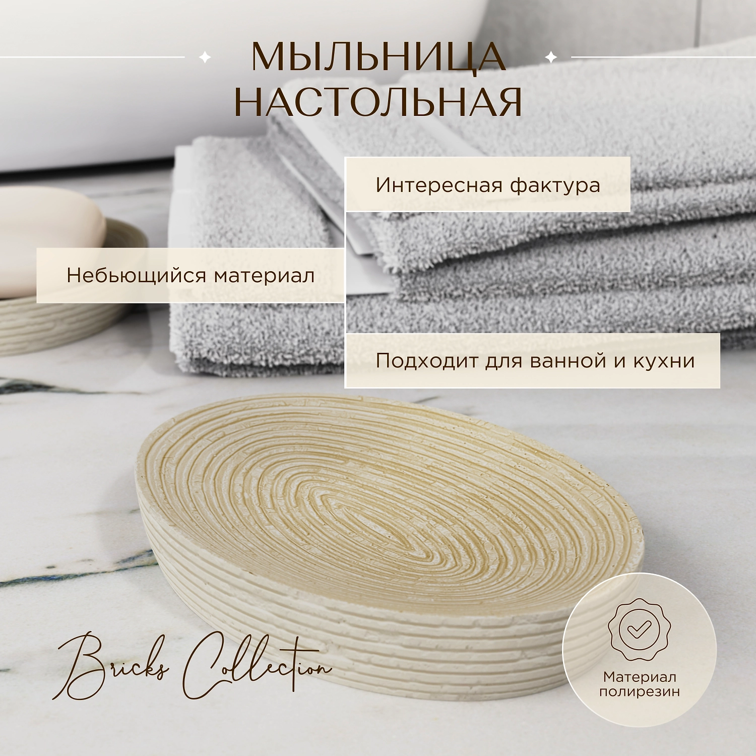 Мыльница настольная BRICKS от производителя Fora изготовлена из экологичного, прочного и стойкого к влажности материала полирезин. Благодаря стильному дизайну бежевая мыльница овальной формы отлично вписывается в интерьер современной ванной комнаты.