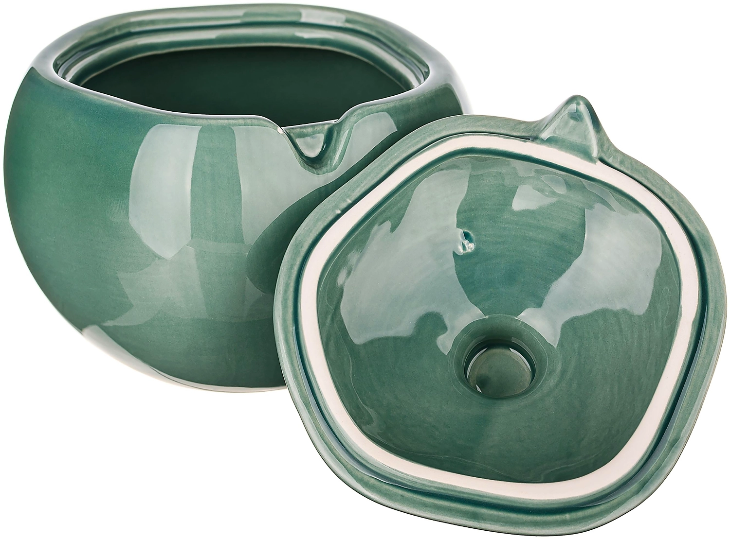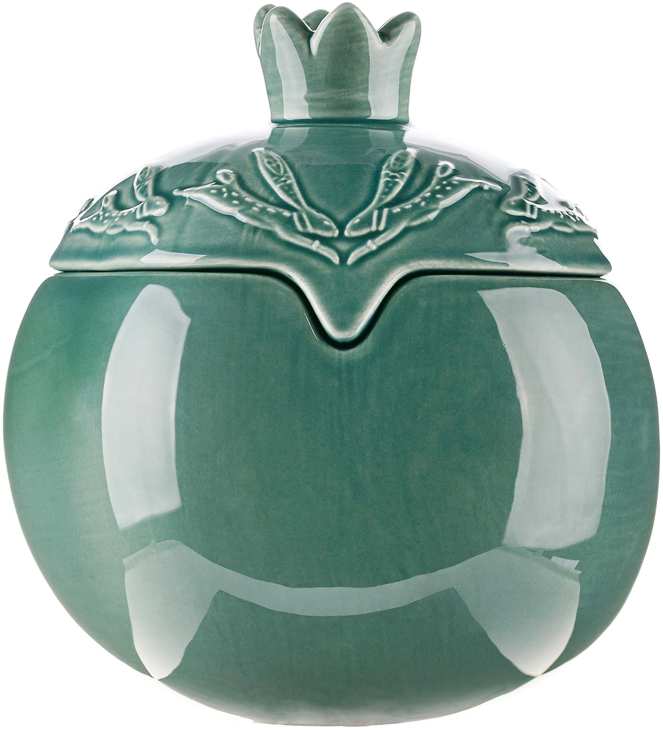 Керамическая шкатулка зелёного цвета. Имеет размер 15x13x13 см. Подойдёт для хранения различных мелочей (украшений, ватных палочек или дисков) и станет оригинальным украшением интерьера.