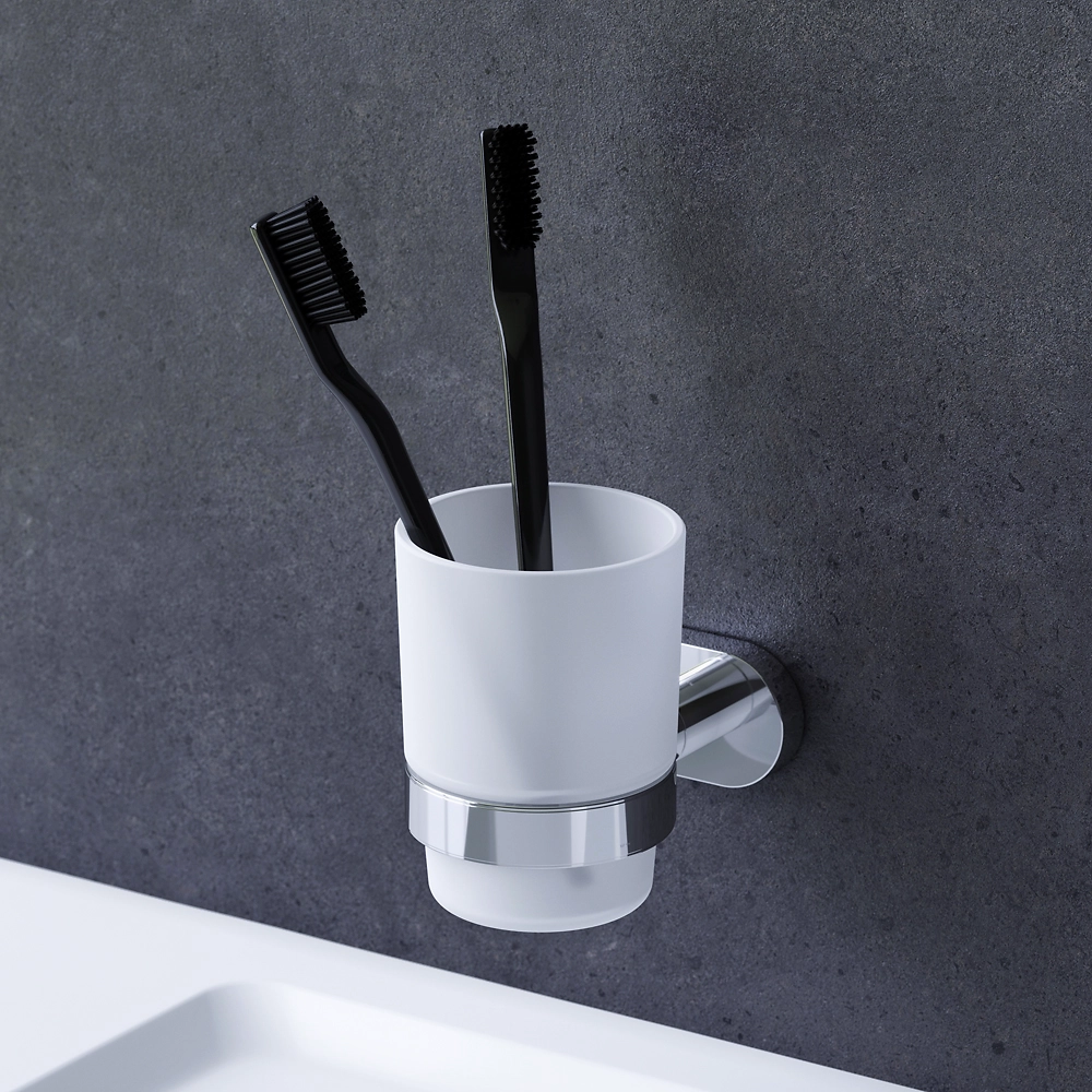 Стакан AM.PM Sense представляет собой конструкцию, состоящую из стеклянной емкости и металлического настенного держателя.