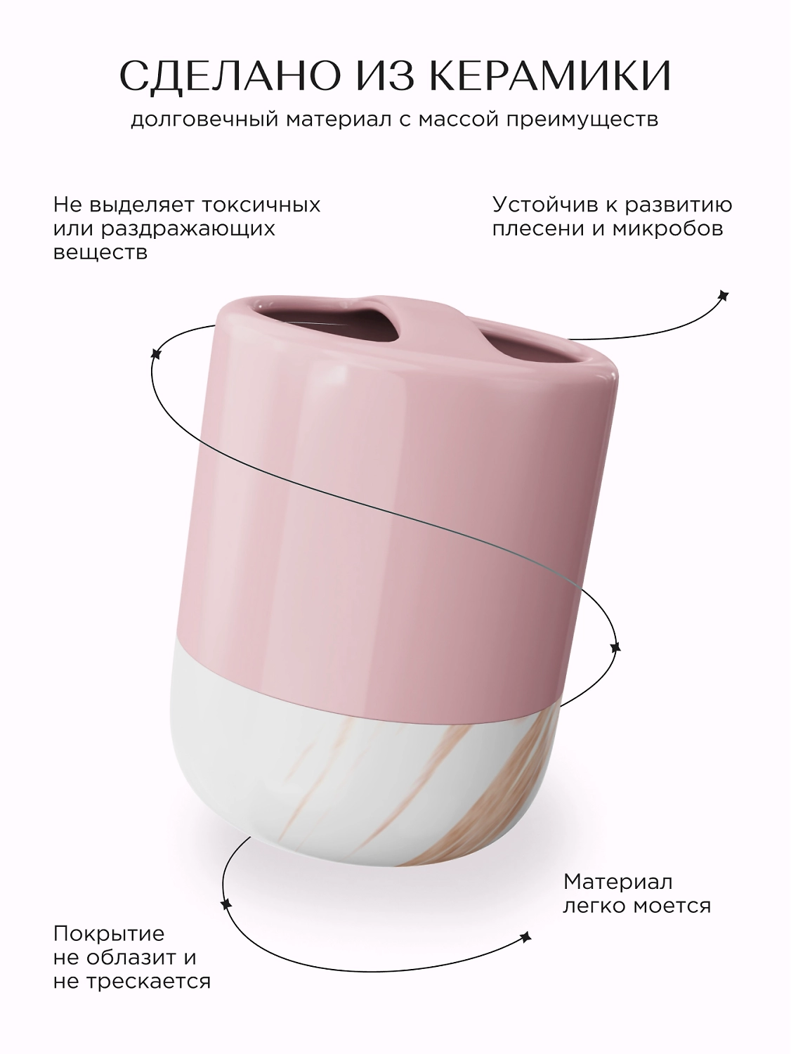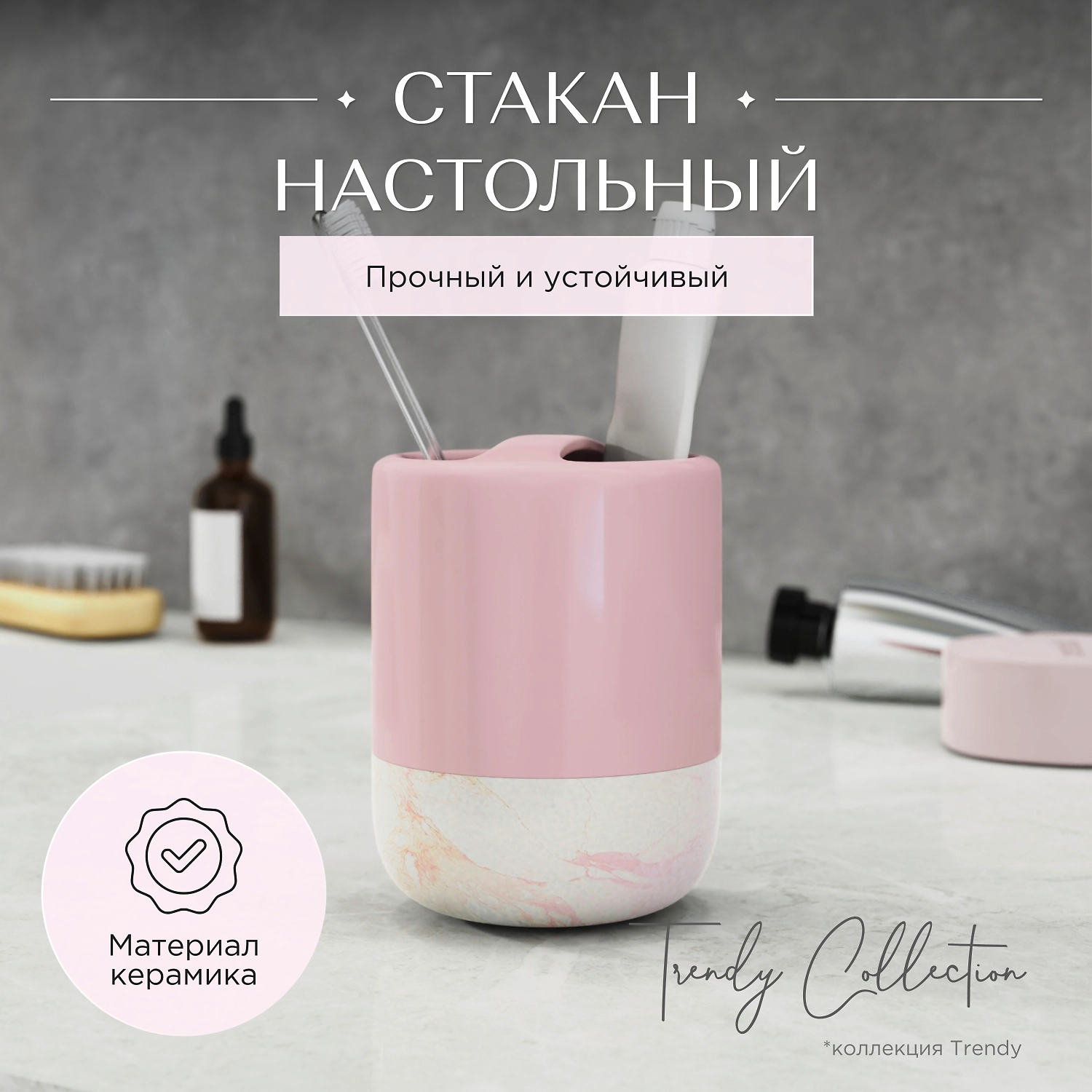 Стакан для зубных щеток настольный розовый керамика TRENDY