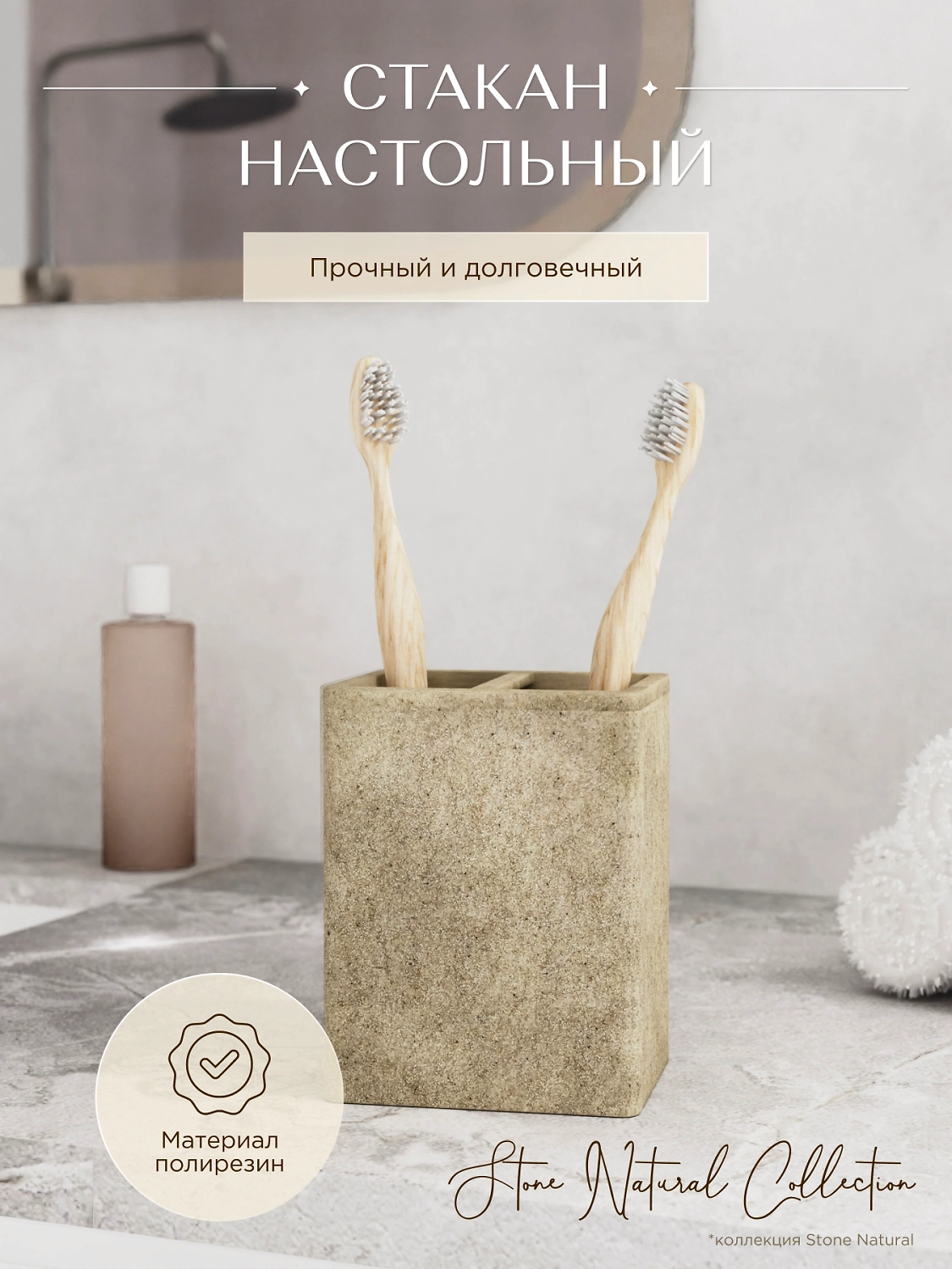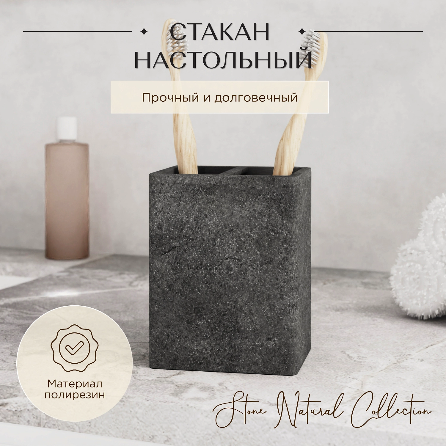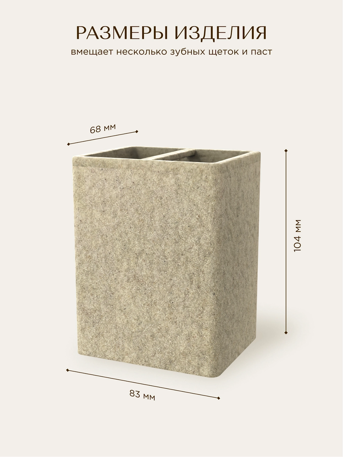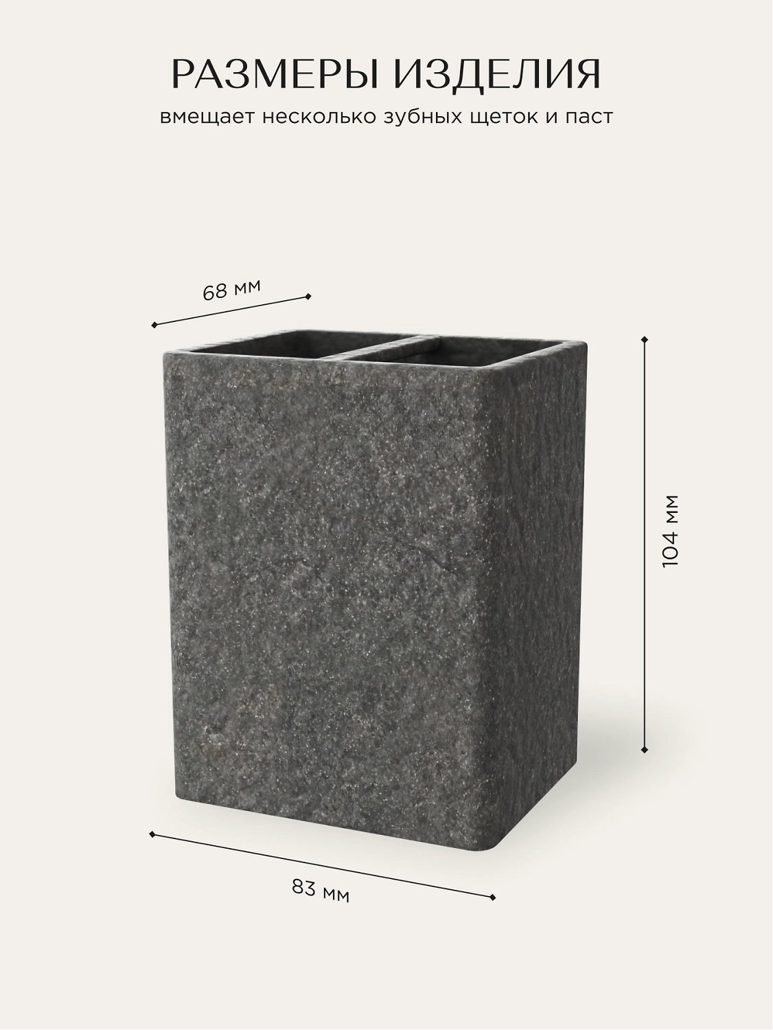 Стакан для зубных щеток настольный STONE NATURAL полирезин
