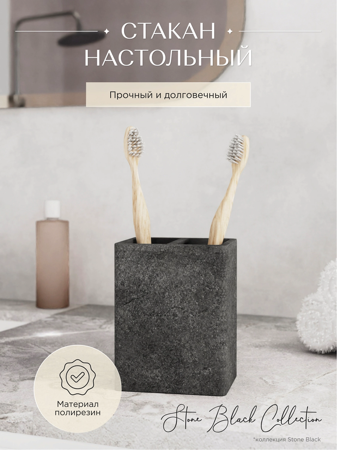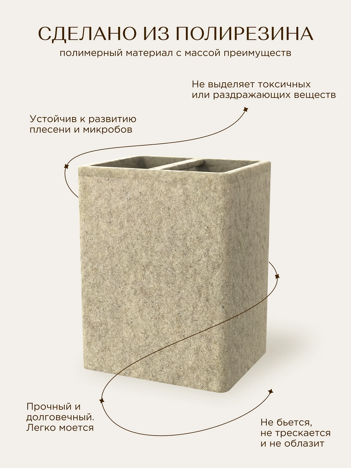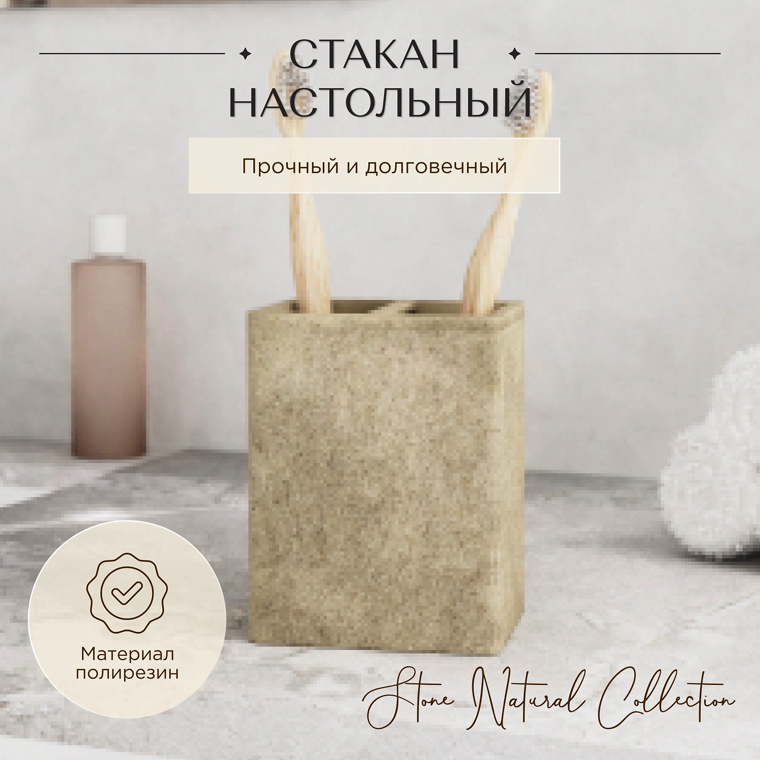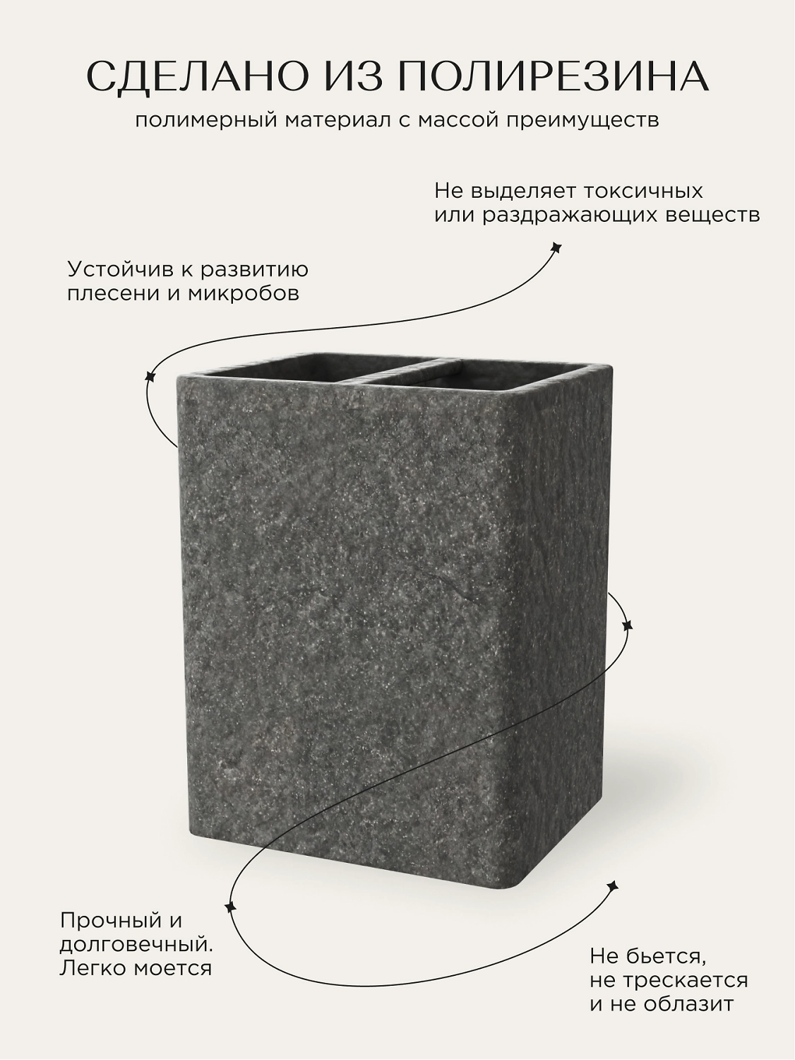 Стакан для зубных щеток настольный STONE NATURAL полирезин