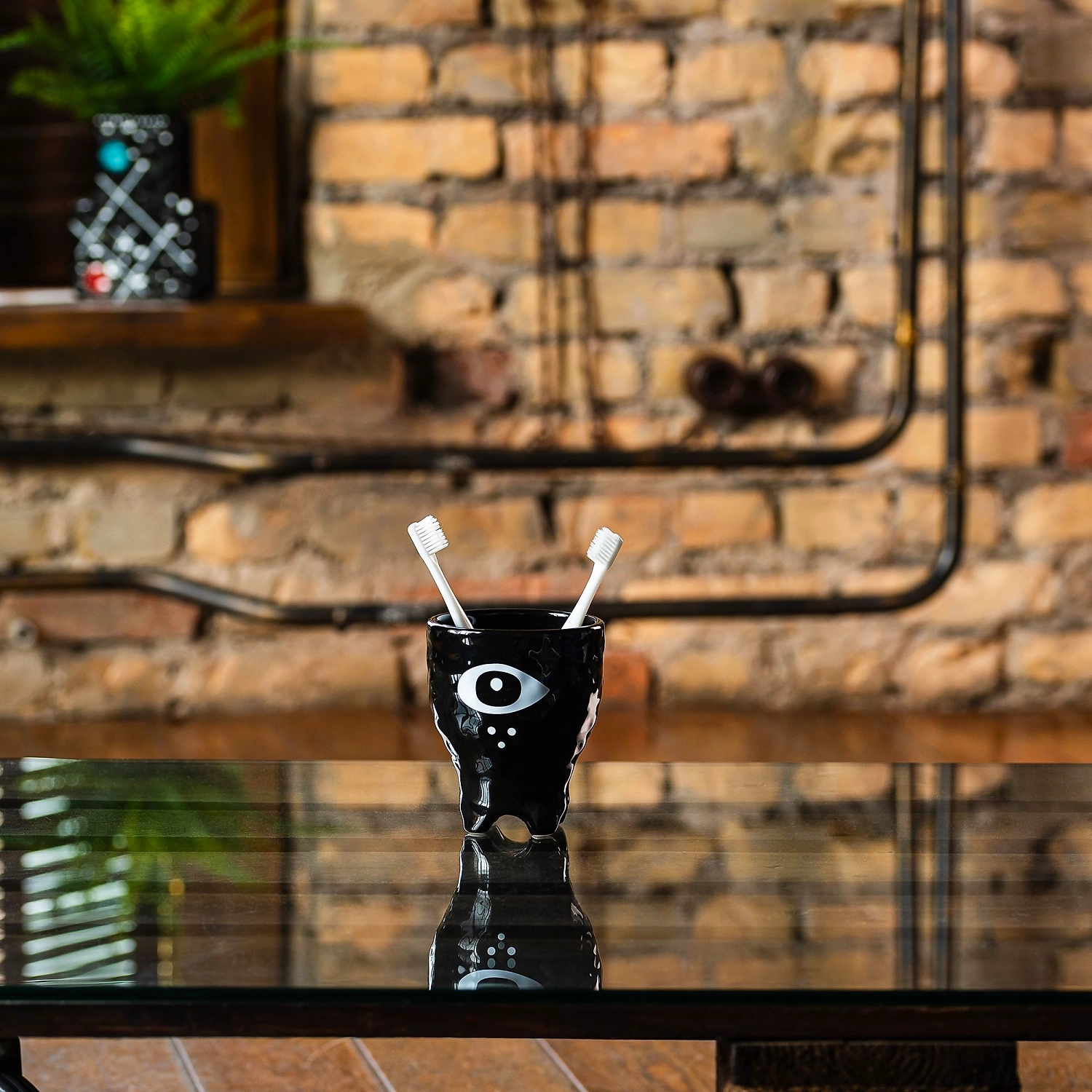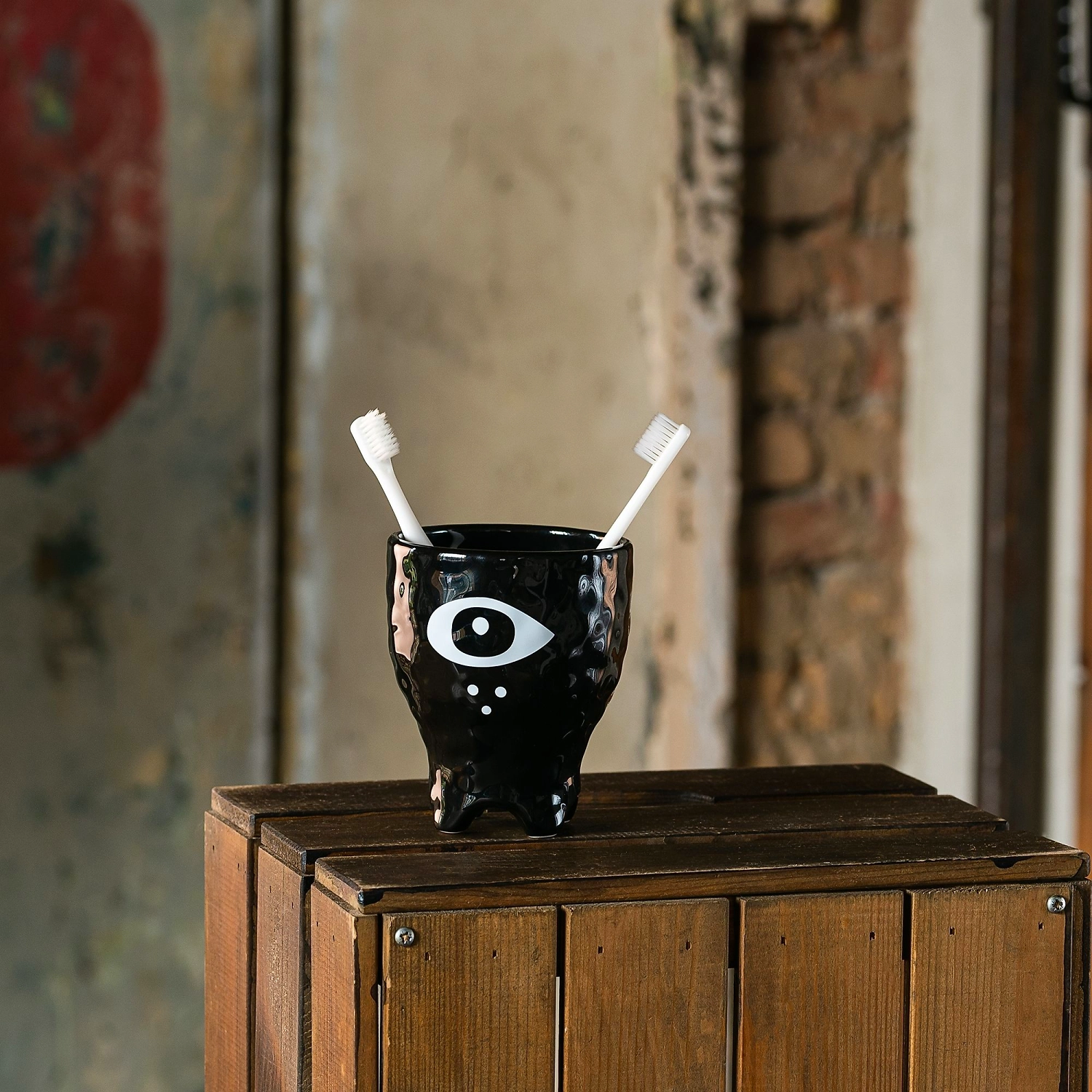 Керамический стакан для зубных щеток объемом 0,5 л. Внутри достаточно места для размещения нескольких зубных щеток и пасты. Игривый дизайн и креативная форма делают стакан отличным украшением интерьера ванной комнаты.