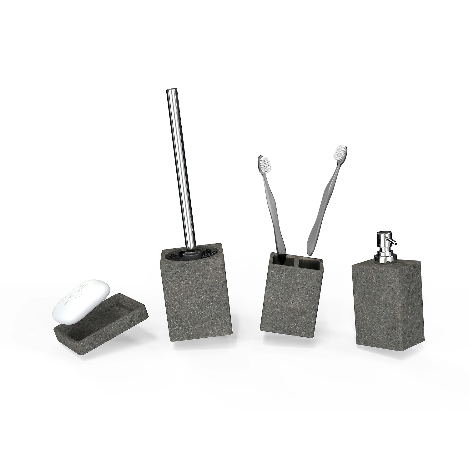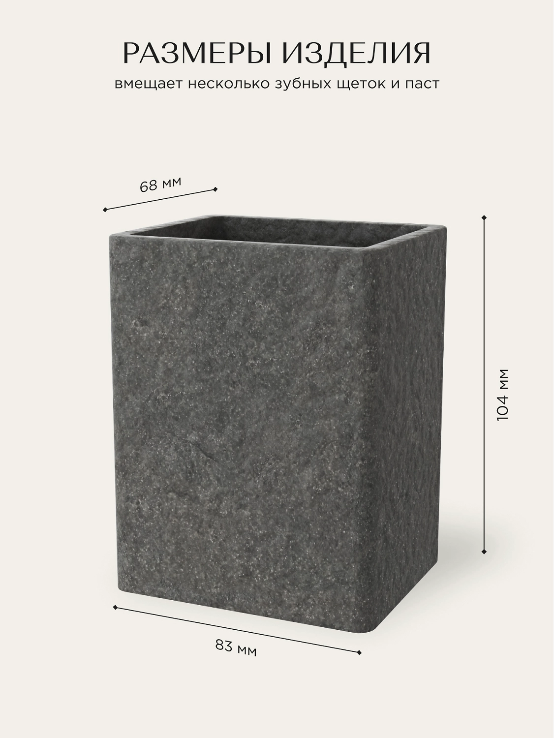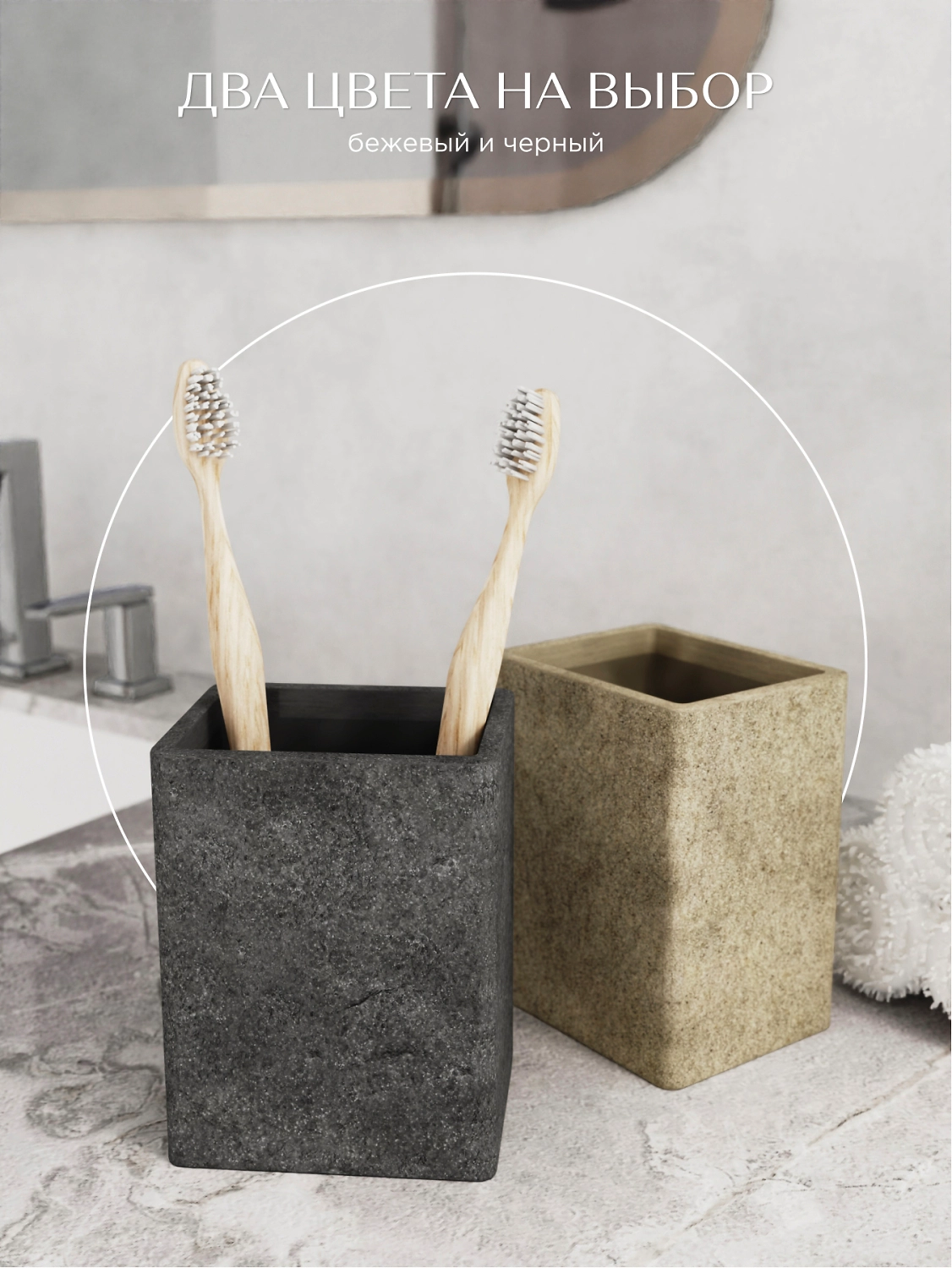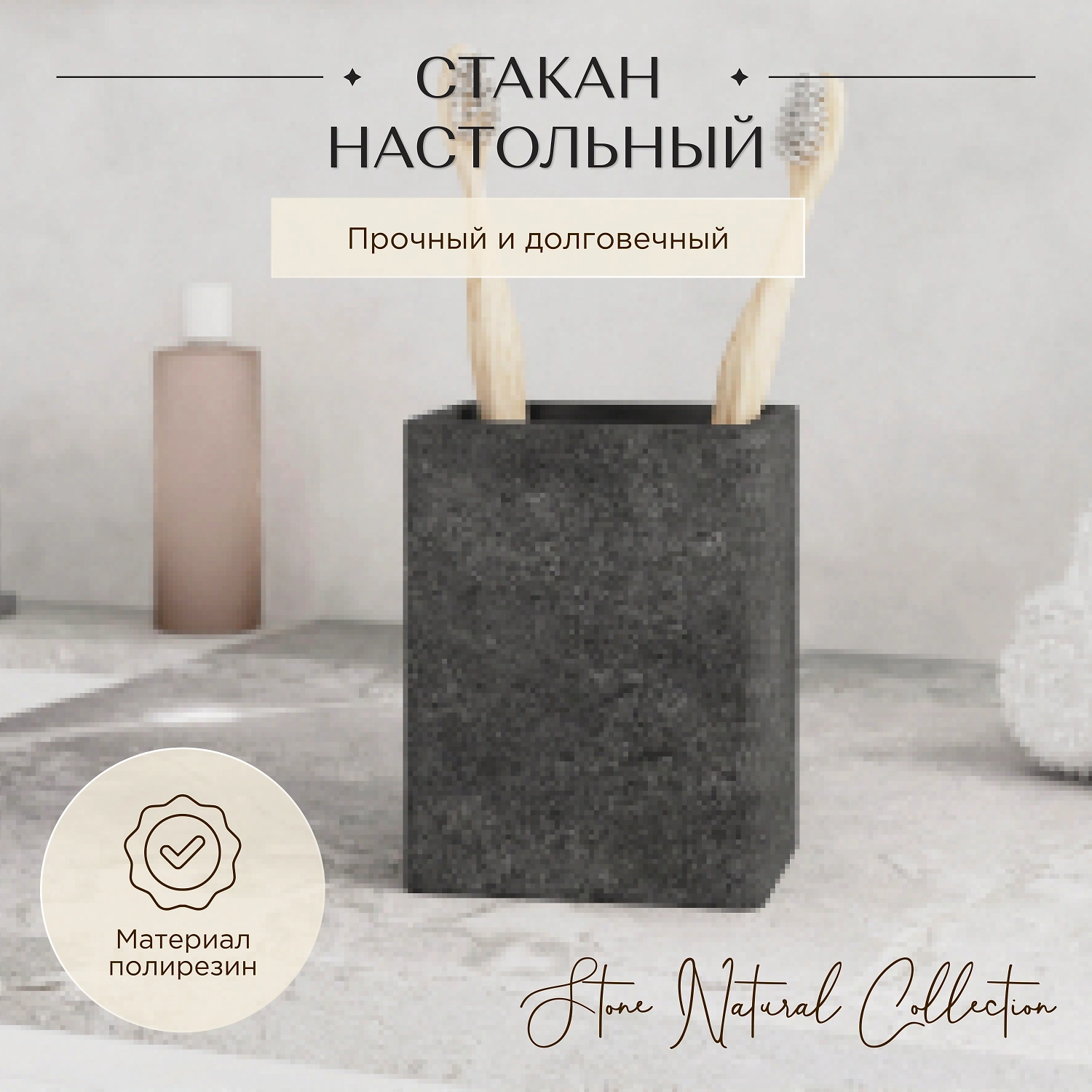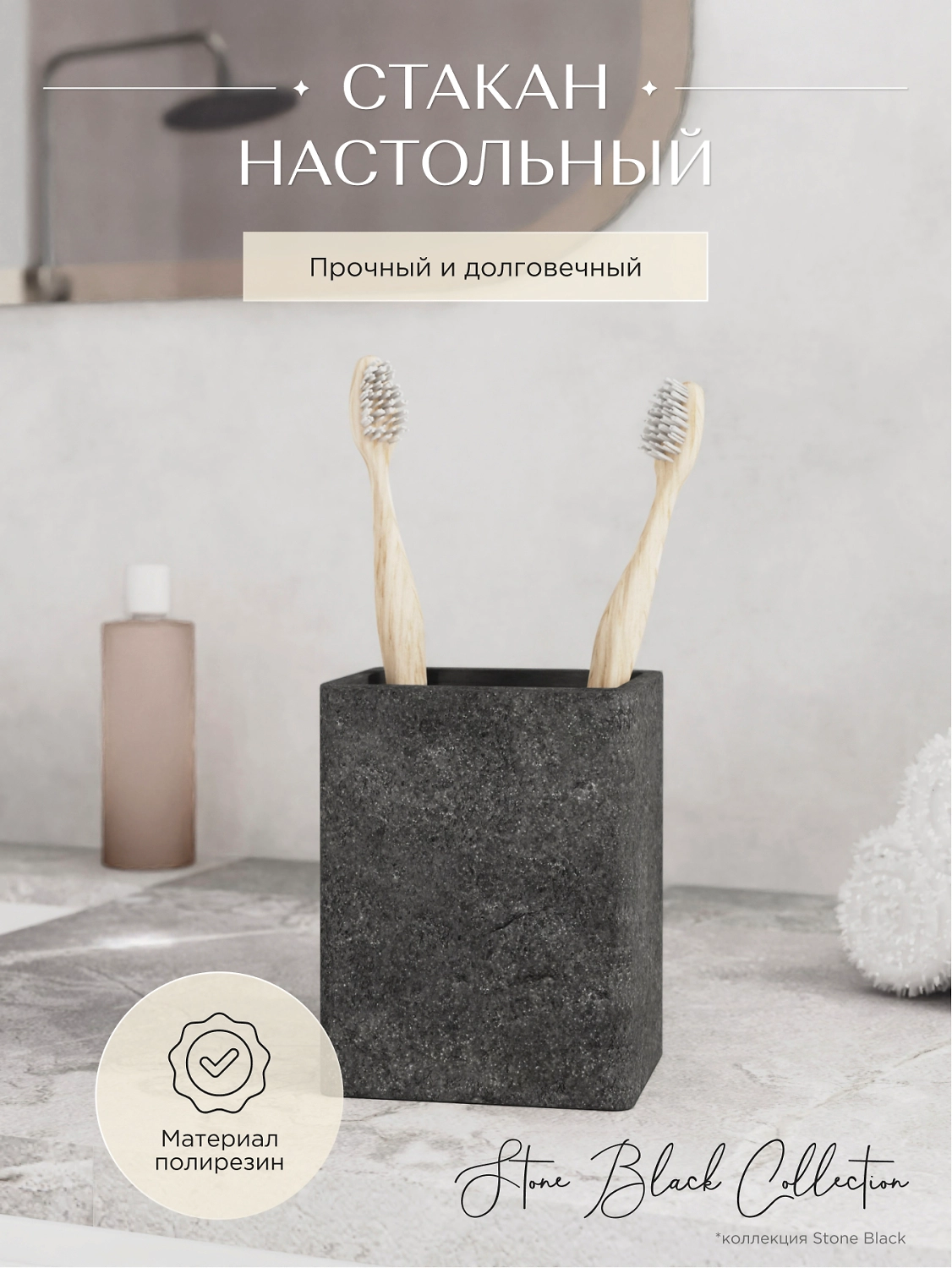 Стакан настольный STONE BLACK от производителя Fora изготовлен из экологичного, прочного и стойкого к влажности материала полирезин. Аксессуар используется для хранения зубных щеток, пасты и бритв.