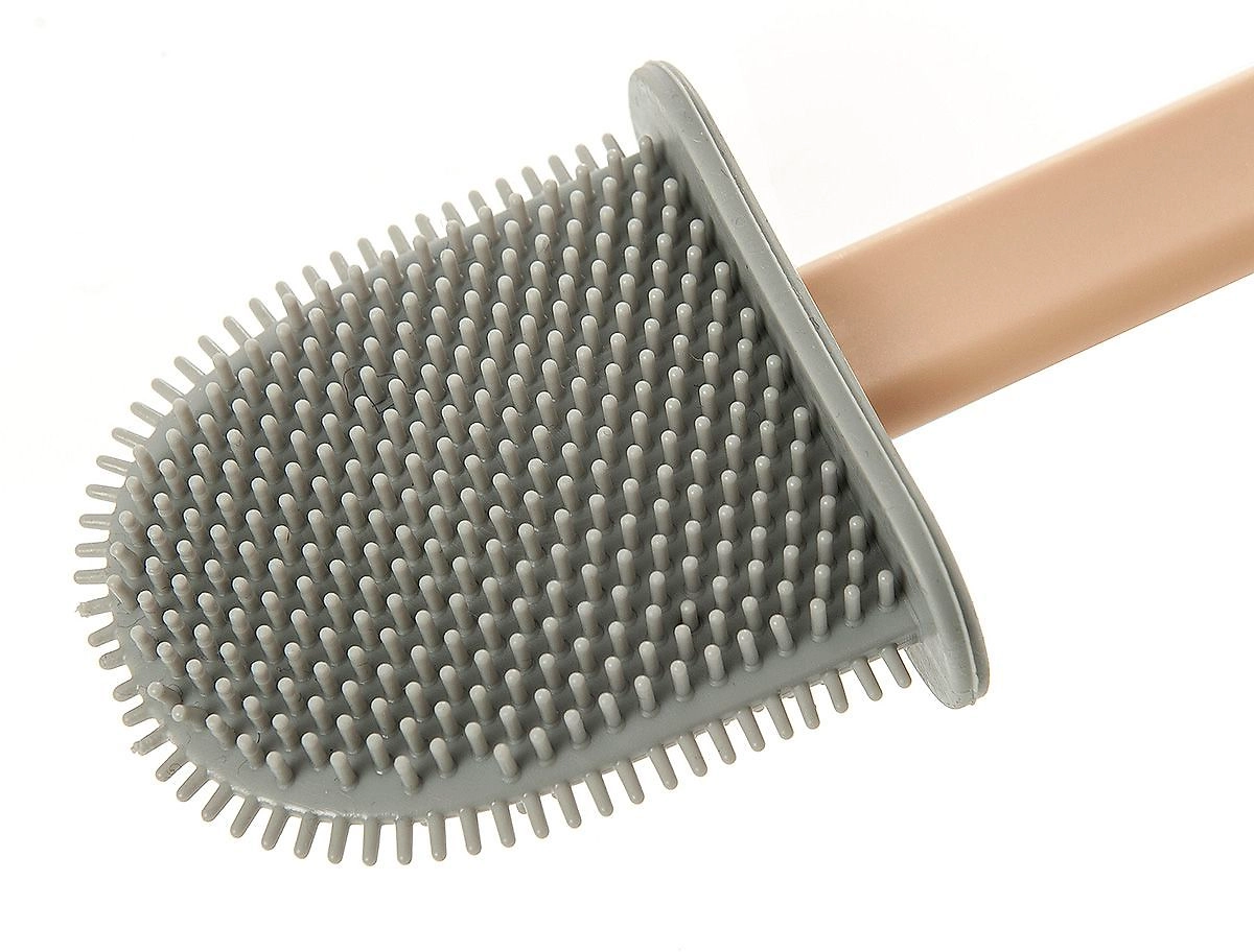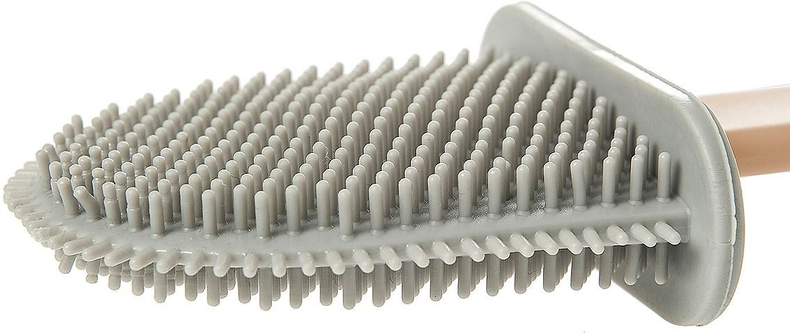 Гибкая силиконовая щетка отлично очистит труднодоступные части унитаза.