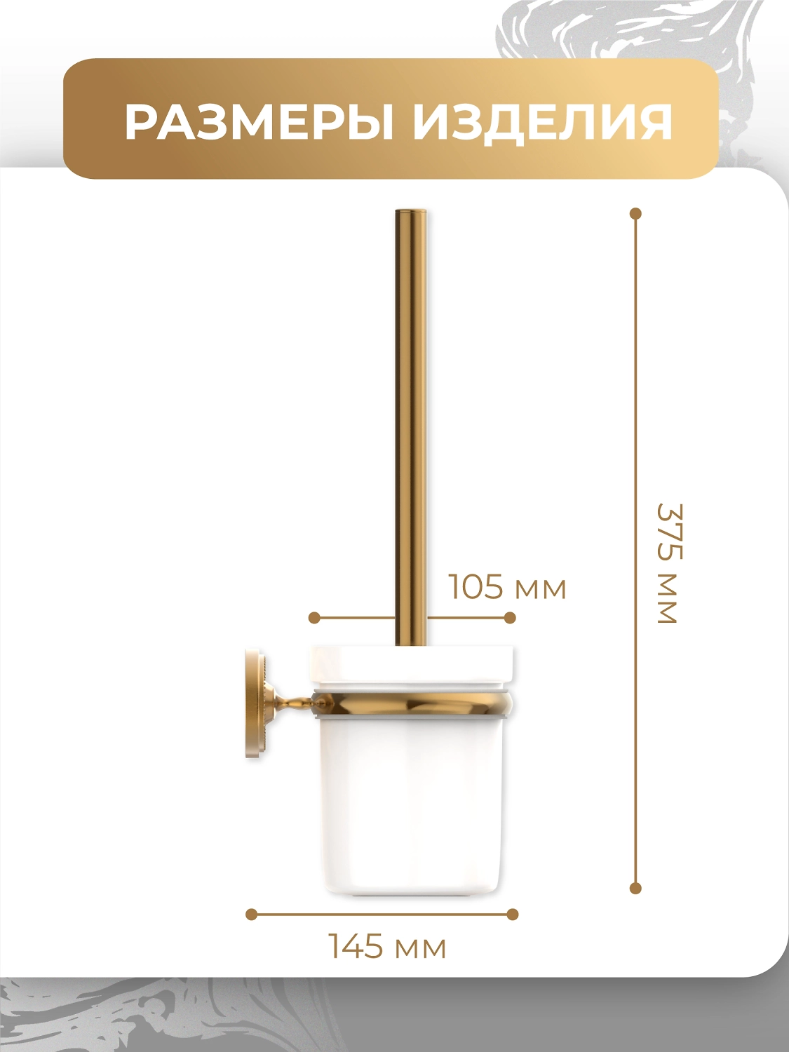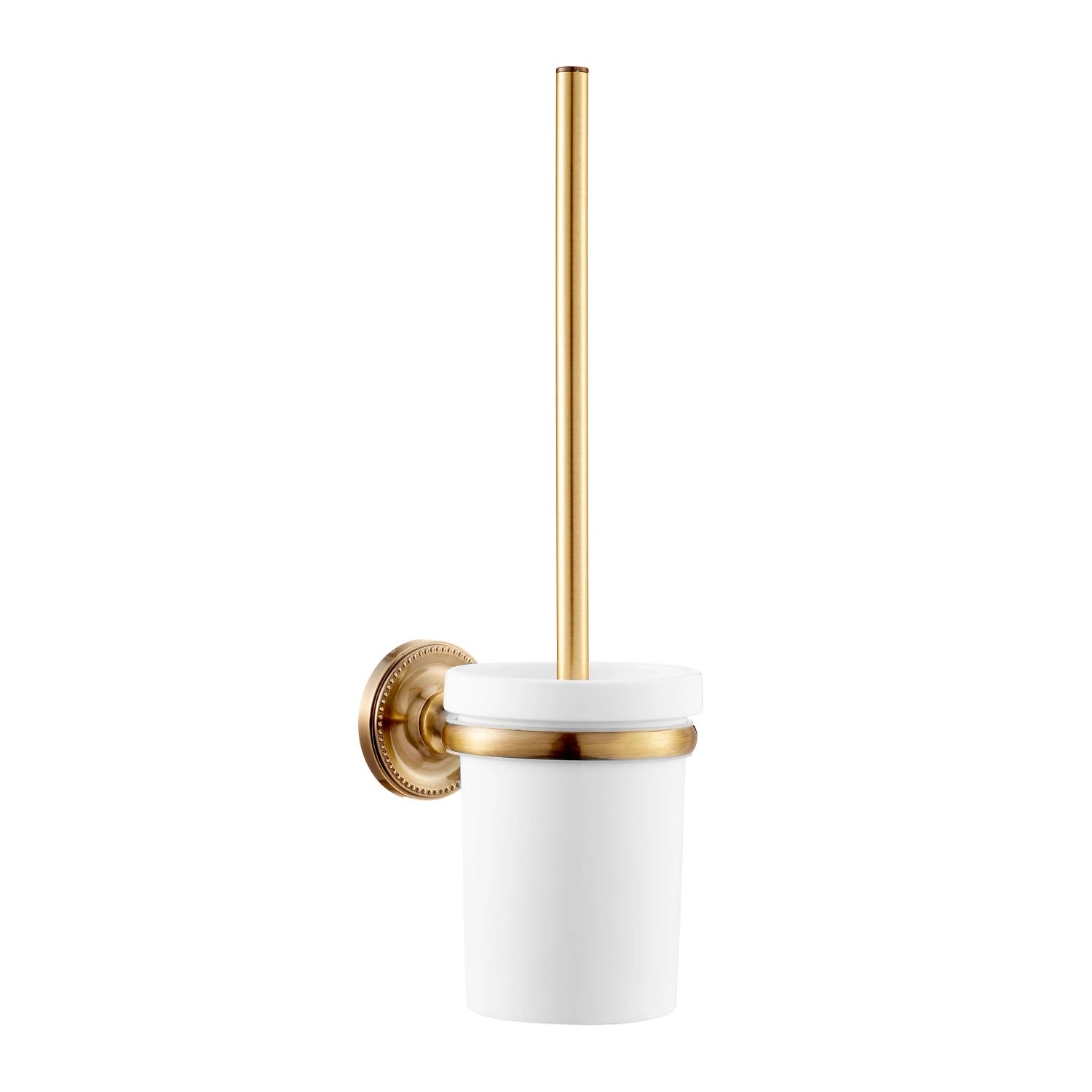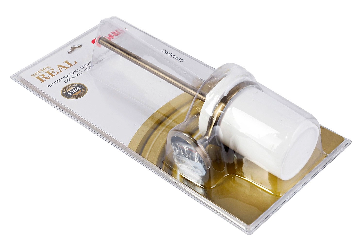 Ершик – один из самых важных аксессуаров в туалете или ванной, который важно гармонично вписать в общий дизайн интерьера. Настенный ершик «REAL» FORA не только выполняет свои прямые функции, но и является стильным дополнением к другим аксессуарам этой серии. Белая керамическая колба с металлическим держателем и ручкой бронзового цвета делают его эстетически привлекательным.