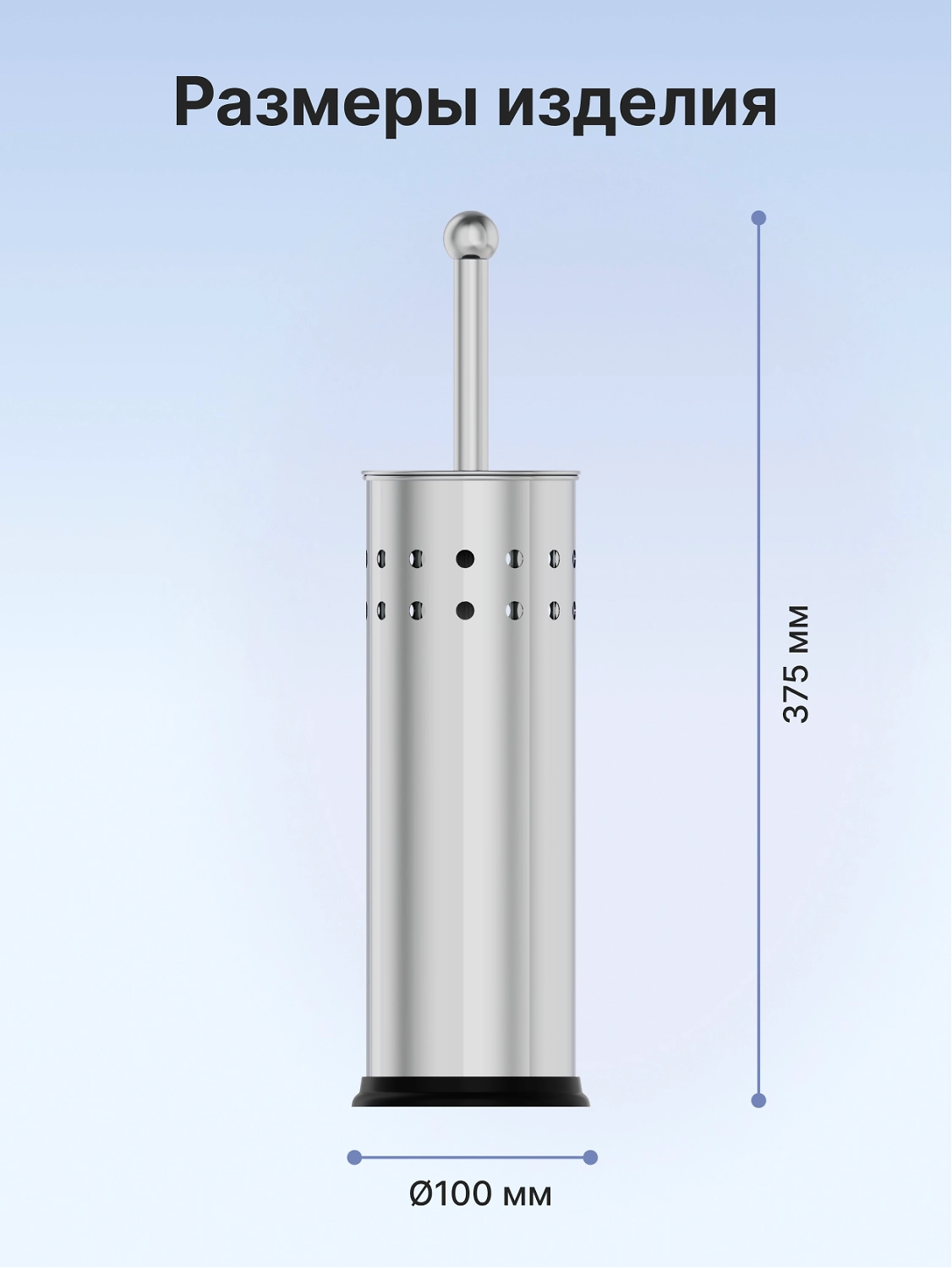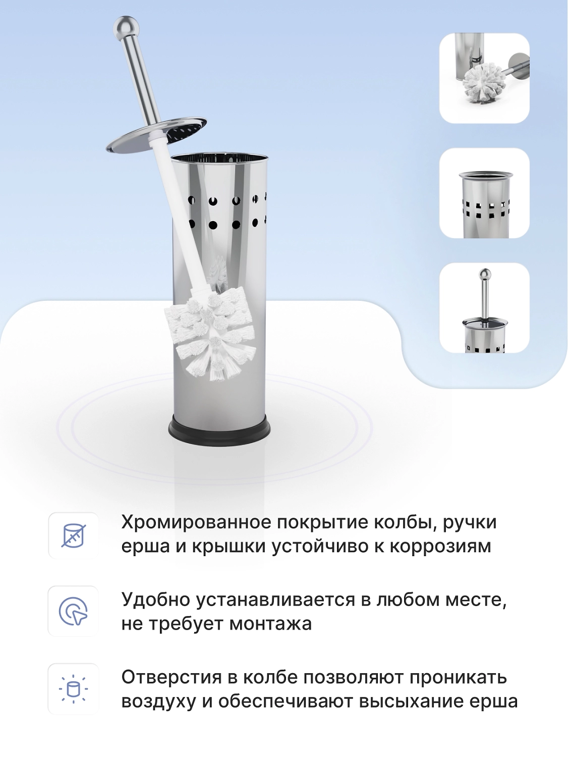 Ершик напольный отлично подходит для поддержания чистоты и гигиены в уборной жилого или офисного помещения. Колба, ручка и крышка изделия выполнены из нержавеющей стали, не подвергаются воздействию высоких температур и влажности, а щетка отлично справляется с удалением загрязнений.
