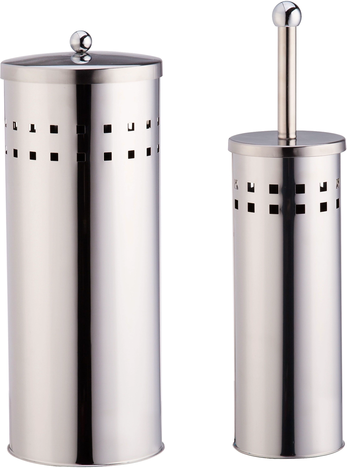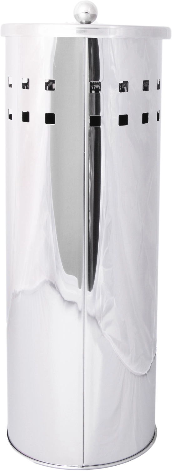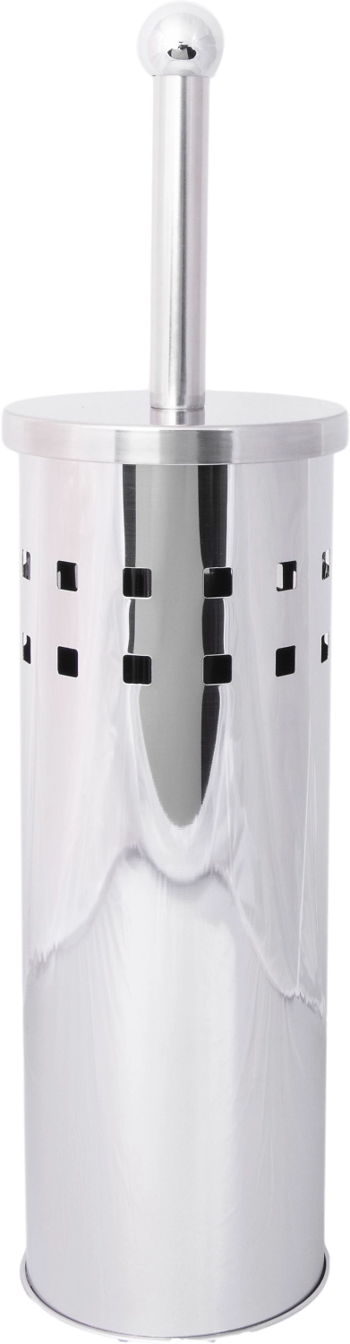 Набор для туалетной комнаты - состоит из щетки (ершика) со щетиной из полипропилена и ручкой из нержавеющей стали для мытья унитаза в напольном держателе из нержавеющей стали и держателя для рулонов туалетной бумаги цилиндрической формы с крышкой диаметром 13 см высотой 35,5 см из нержавеющей стали.