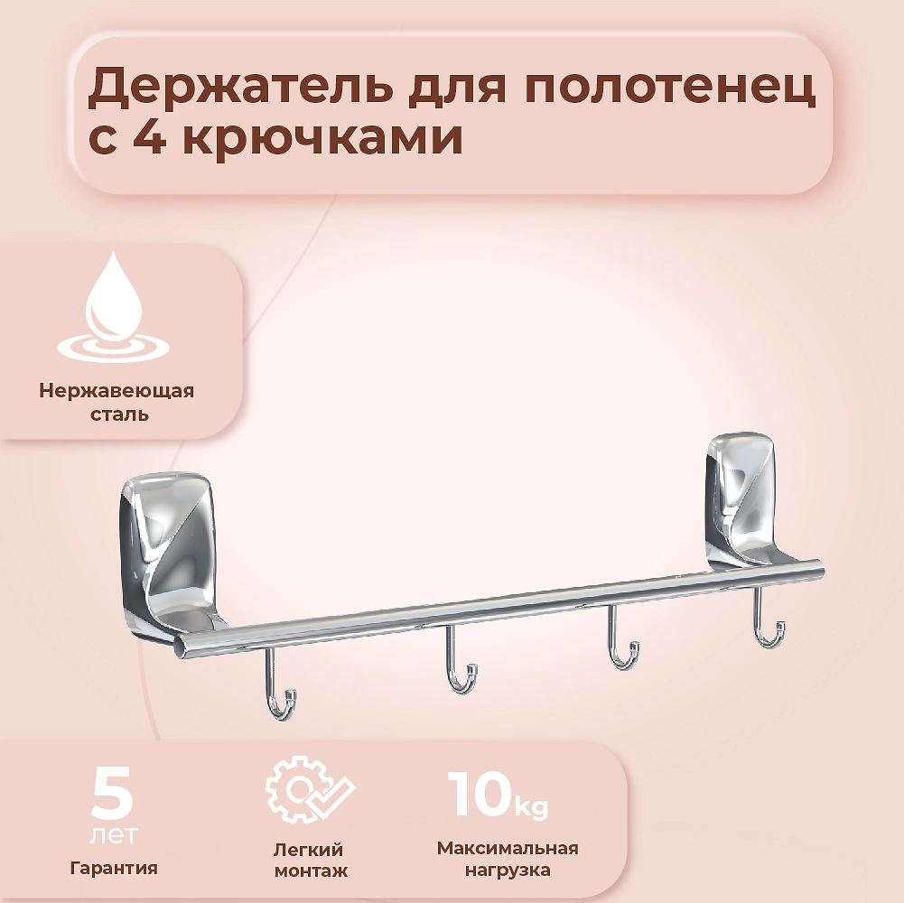 Держатель для полотенец с 4 крючками FLOWER FORA
