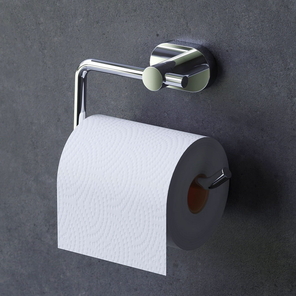 Держатель для туалетной бумаги AM.PM Sense L выполнен из прочного металлического сплава. За счет хромированной поверхности изделие идеально сочетается со смесителями и другими элементами.