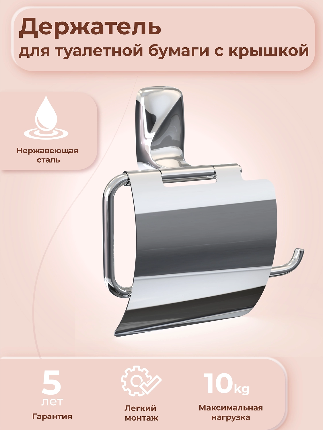 Настенный держатель для туалетной бумаги с крышкой – удобное приспособление для хранения и использования бумаги. Имеет стандартные размеры под рулоны. Удобен в установке и чистке.