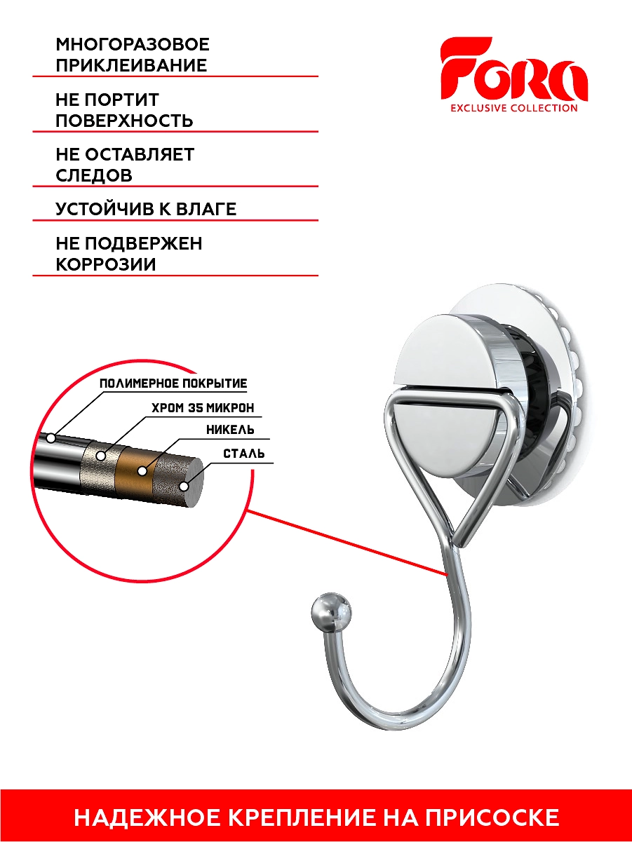 Крючок для ванной на присоске Fora Atlant