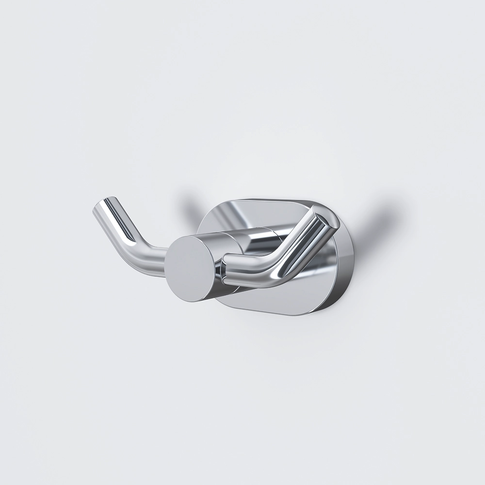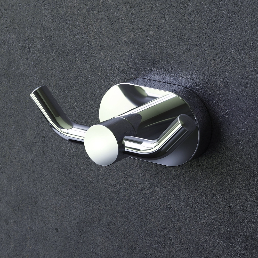 Двойной крючок AM.PM Sense L выполнен из высококачественного металлического сплава, покрытого хромом. Лаконичный дизайн аксессуара будет уместен в любой современной ванной.