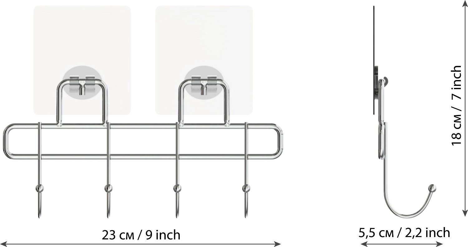Чтобы зафиксировать ее на поверхности стены не надо делать отверстия. Просто уберите защитную пленку и плотно прижмите силиконовое основание в нужном месте. Хромированный металл, из которого сделан аксессуар, устойчив к коррозии, на нем не появится ржавчина. Планка с металлическими крючками – это стильно и удобно! Для создания гармоничного интерьера можно дополнить другими товарами из серии "Kleber Lite".