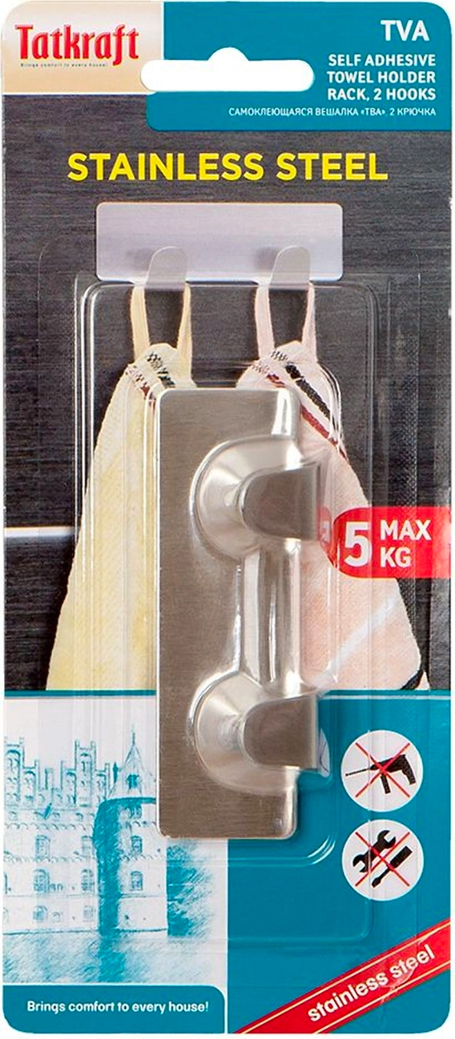Планка самоклеющаяся TATKRAFT 2 крючка сталь 8х3 см