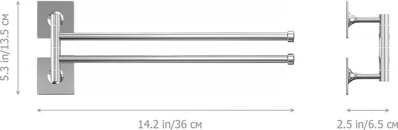 Крючки совершенно не подходят для вашей ванной? Хотите, чтобы пользоваться полотенцами было более удобно? Попробуйте установить поворотный полотенцедержатель "Kleber Expert" с двумя штангами. Вы сможете хранить полотенца в расправленном виде и размещать их на любом расстоянии, раздвигая штанги. Вы сами выбираете угол поворота, чтобы наиболее комфортно использовать пространство в ванной.