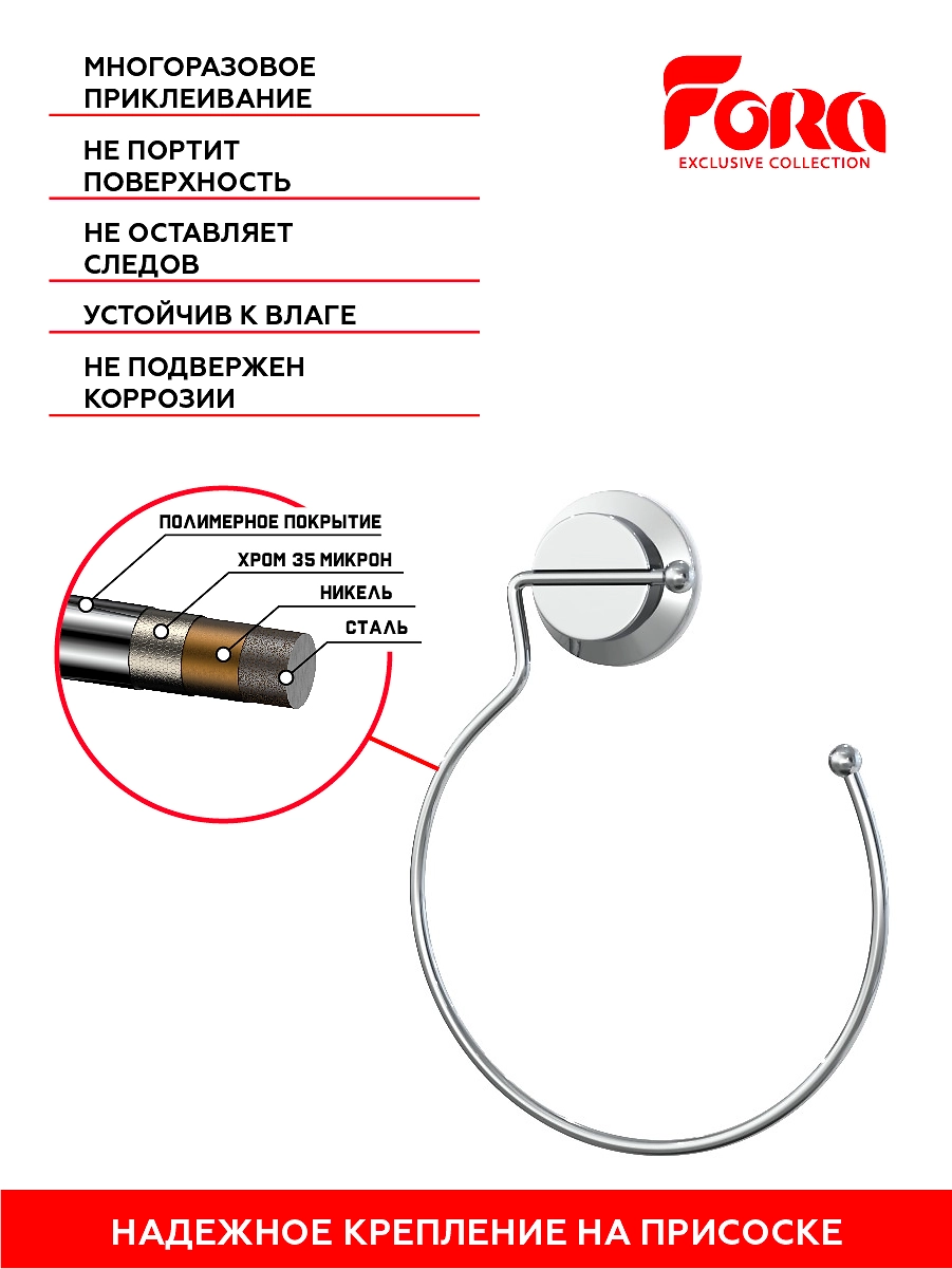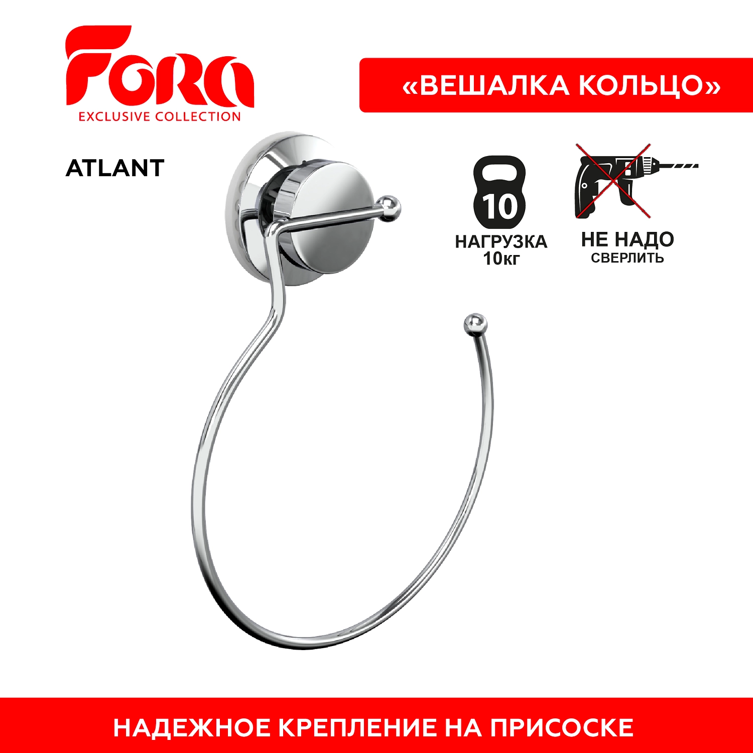 Вешалка для полотенца кольцо на присоске Fora ATLANT