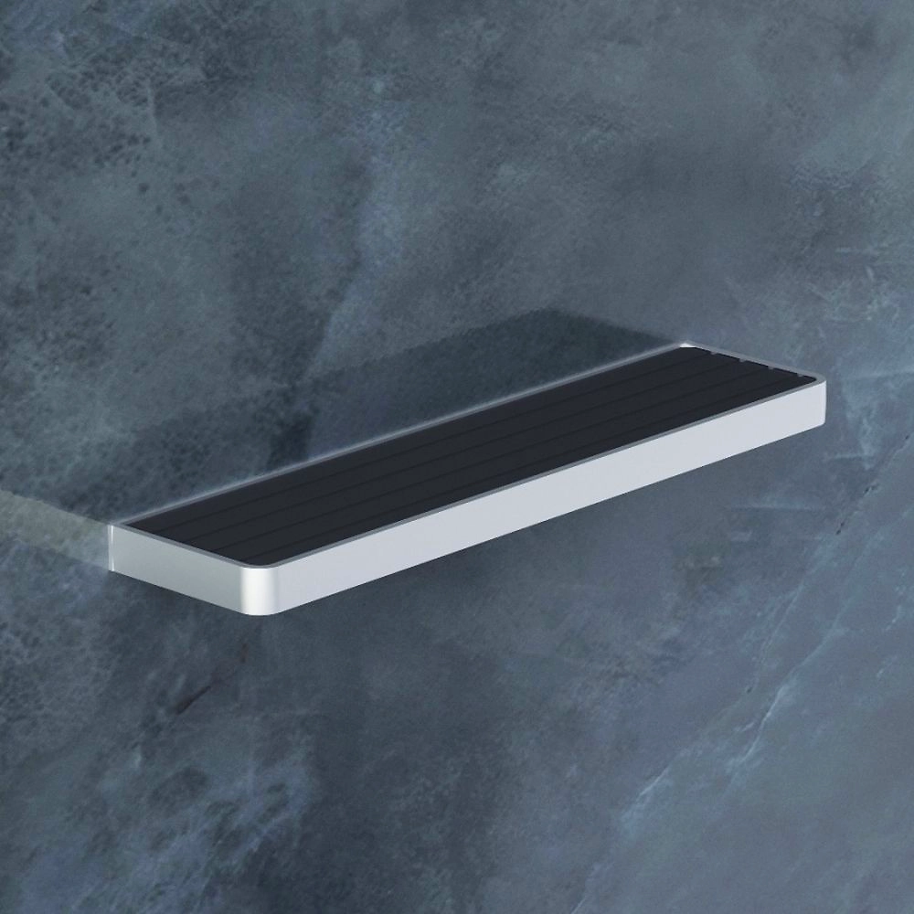 Полка предназначена для размещения ванных принадлежностей. Модель в минималистичном стиле идеально подходит для установки в санузлах с современным дизайном.