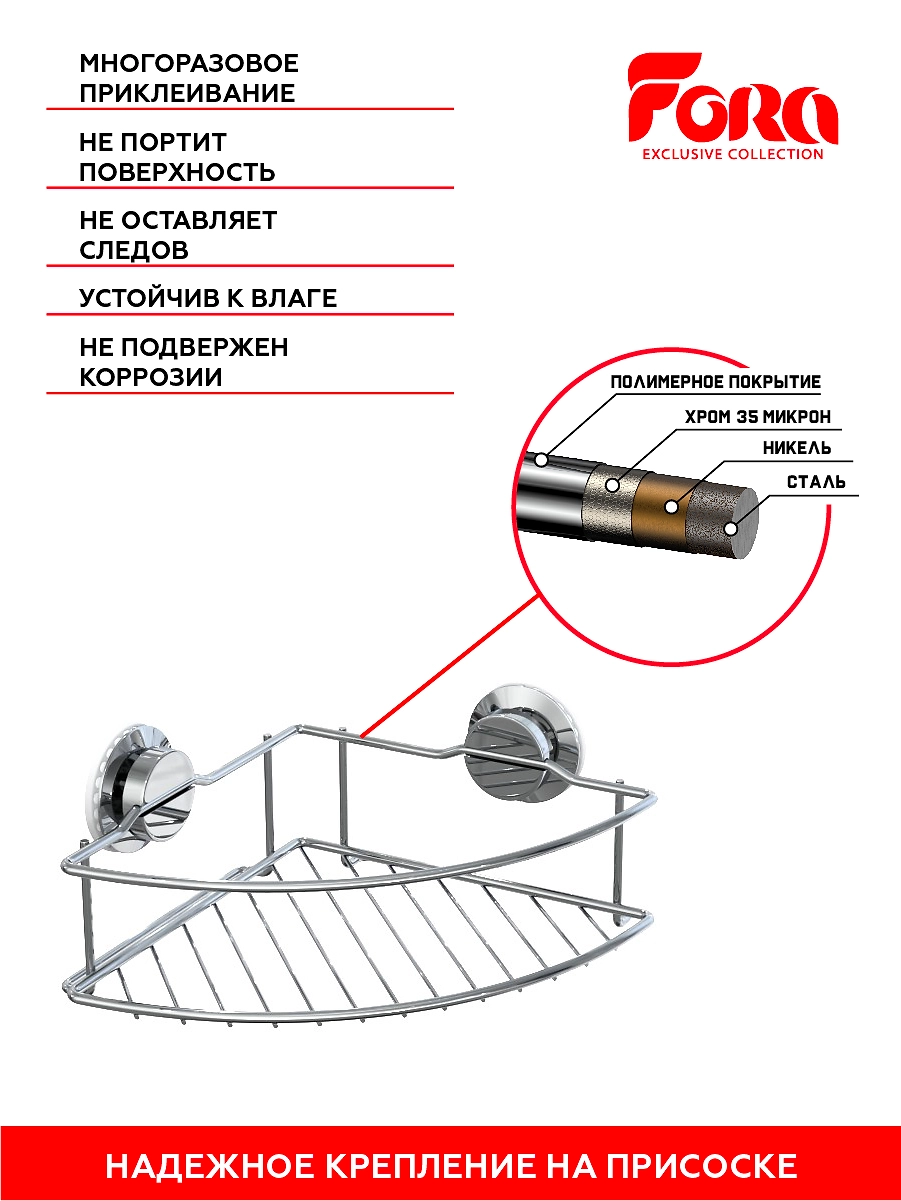 Полка для ванных принадлежностей ATLANT хром 350х240х80 мм
