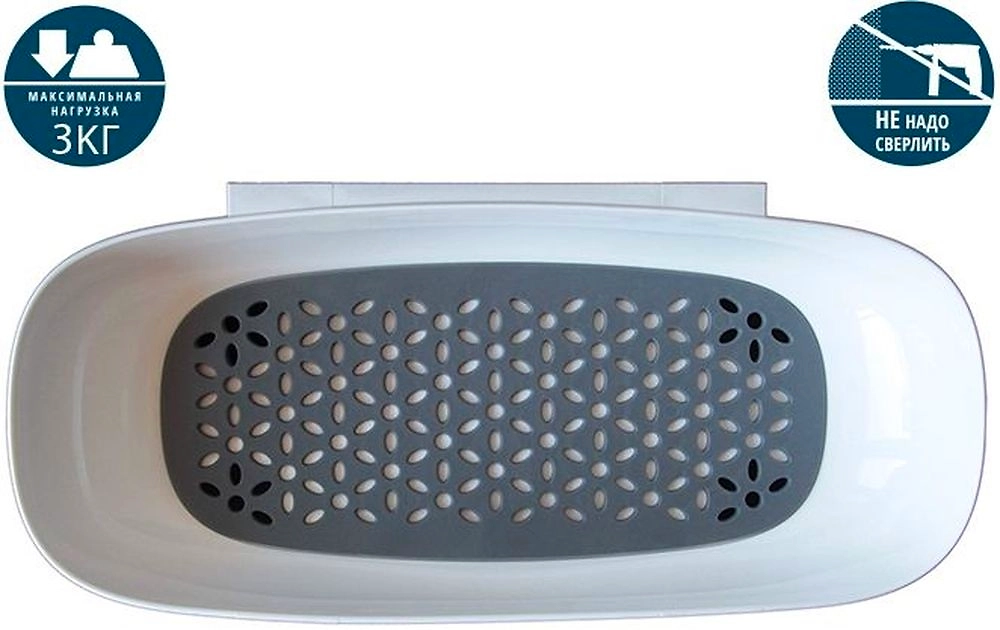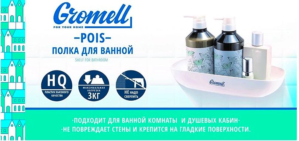 Полка для ванной комнаты изготовлены из пластика высокого качества. Установка на стену не требует сверления, достаточно снять с клеевого крепления защитную пленку и разместить на стене.