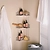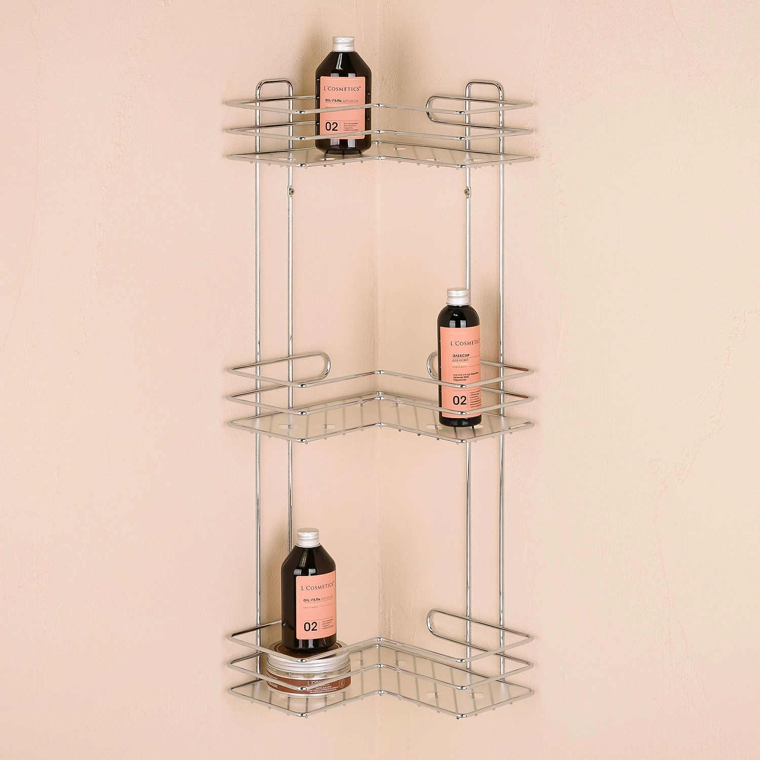Угловая полка цвета хром размером 24,9×24,9×70,4 см сделана из стали с гальваническим покрытием. Благодаря этому они не ржавеет и надолго сохраняет первозданный внешний вид. Она надёжно крепится к стене при помощи саморезов, которые идут в комплекте. Благодаря лаконичному дизайну она подойдёт для любого интерьера. Полка имеет дополнительное пластиковое дно, которое препятствует выпадению мелких предметов.