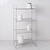 Стеллаж напольный четырёхуровневый имеет размеры: высота 80 см, длина 25 см, ширина 40 см. Сделан из прочной стали с устойчивым к царапинам полимерным покрытием - краской серого цвета.