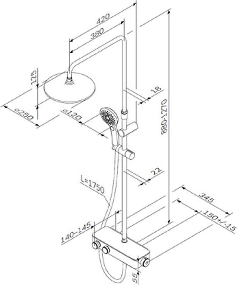 • Диаметр верхнего душа 25