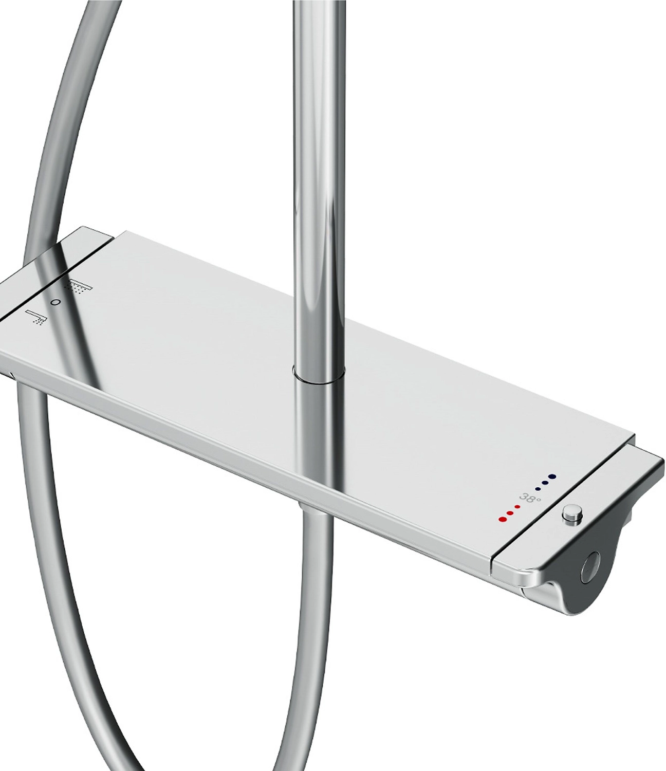 - Регулируемая по высоте телескопическая стойка позволяет создать индивидуальные настройки под любую ванную комнату.