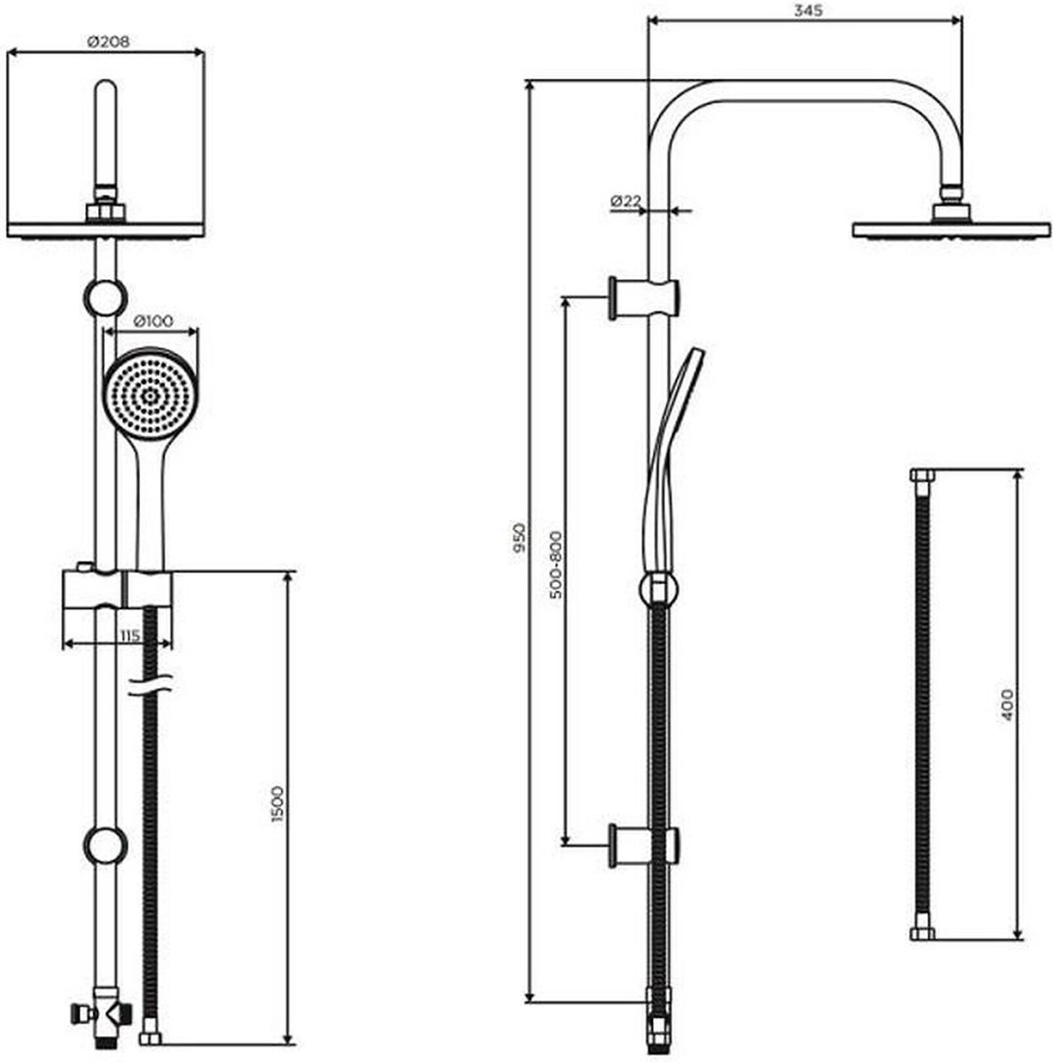 • Диаметр верхнего душа 25