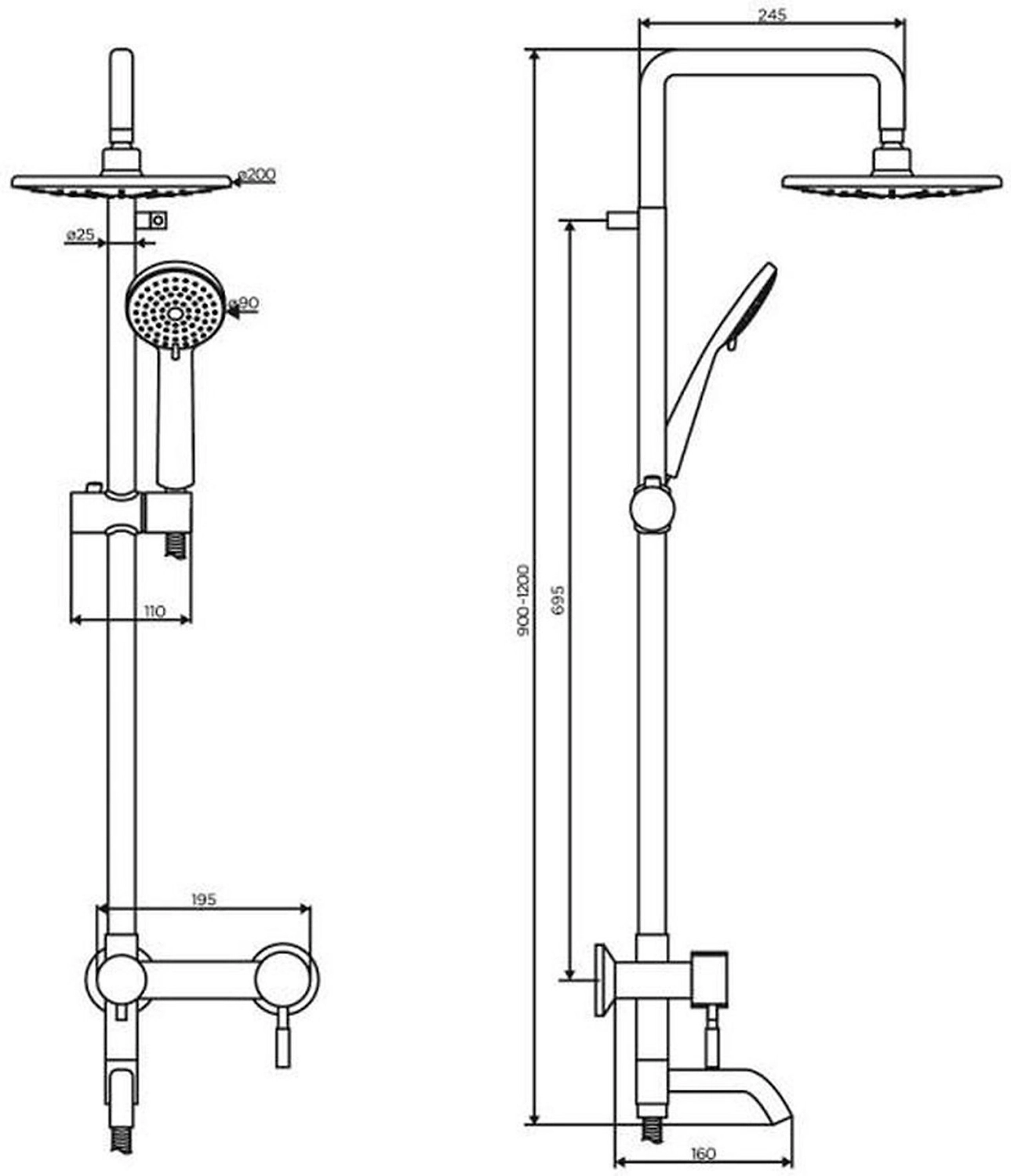 • Диаметр верхнего душа