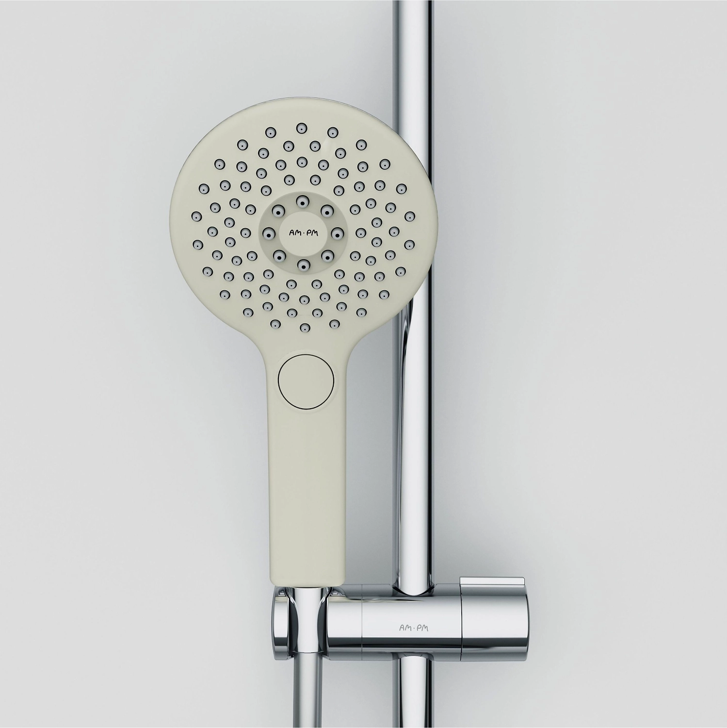 Душевой комплект AM.PM Inspire 2.0 F0150A000. Материал латунь/пластик, тип управления механический, 3 режима струи ручного душа: Spray, EnerJet, Spray + Massage, переключатель режимов ручного душа Simple Switch Push, держатель ручного душа регулируемый в трех плоскостях, пластиковый шланг с защитой от перекручивания длиной 175 см, система против известковых отложений, держатель штанги регулируемый по высоте.