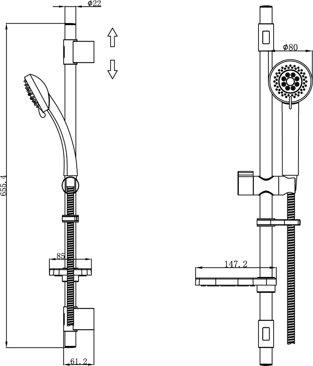 Гарнитур душевой IDDIS хром 59х30х656 мм
