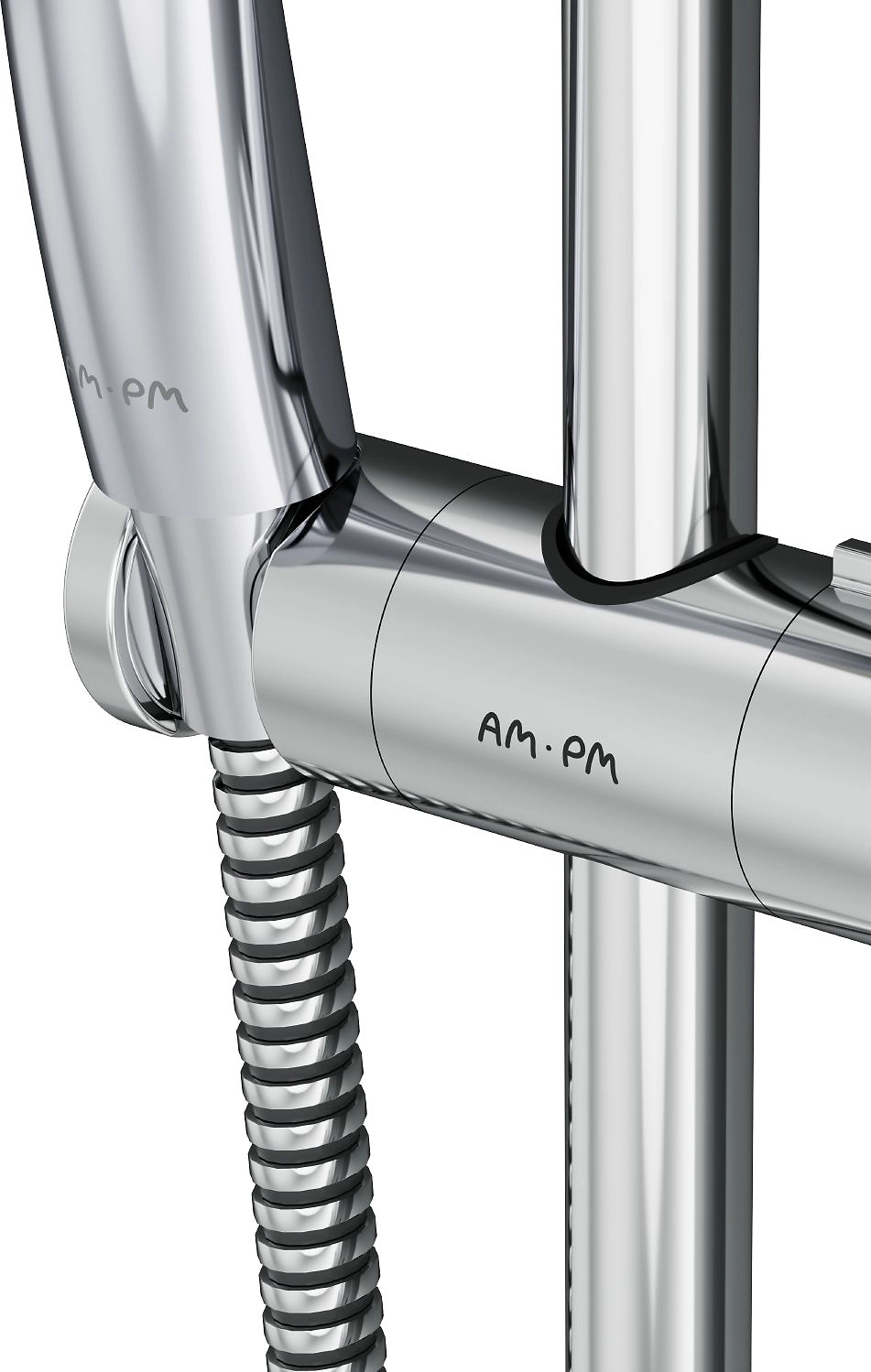 Душевой набор AM.PM Gem сочетает в себе стильный дизайн и премиальное качество. В комплект входит стойка с держателем, ручной душ с режимом Spray и шланг с защитой от перекручивания.