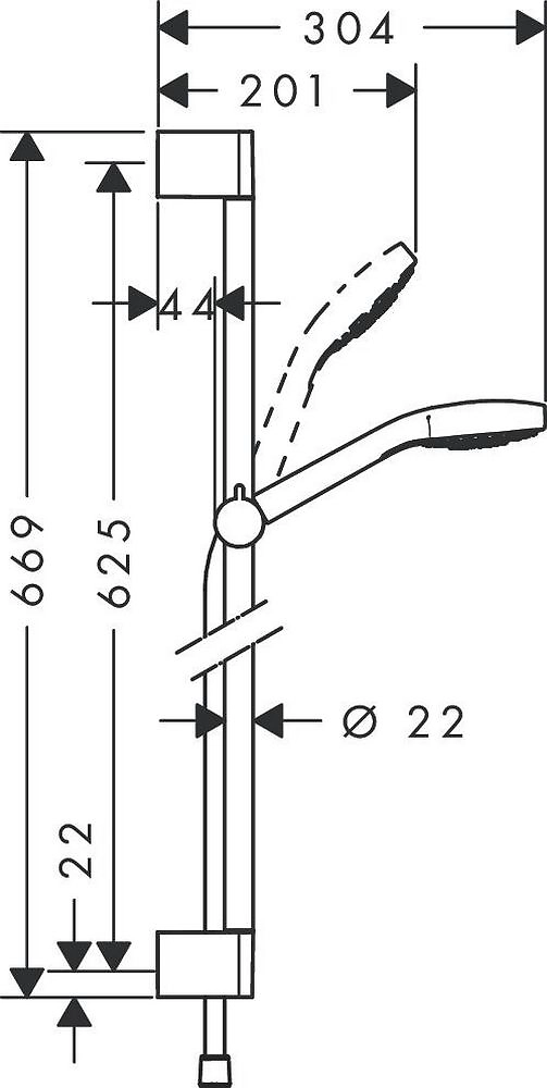 Штанга UnicaCroma 650 мм оснащена держателем с функцией фиксации и возможностью изменения угла наклона лейки до 45 град., что делает использование гарнитура еще удобнее.