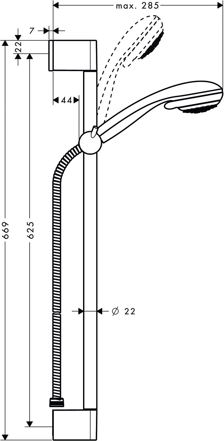 Душевой гарнитур Hansgrohe Crometta 85 Vario можно устанавливать над ванной, или в душевой зоне.