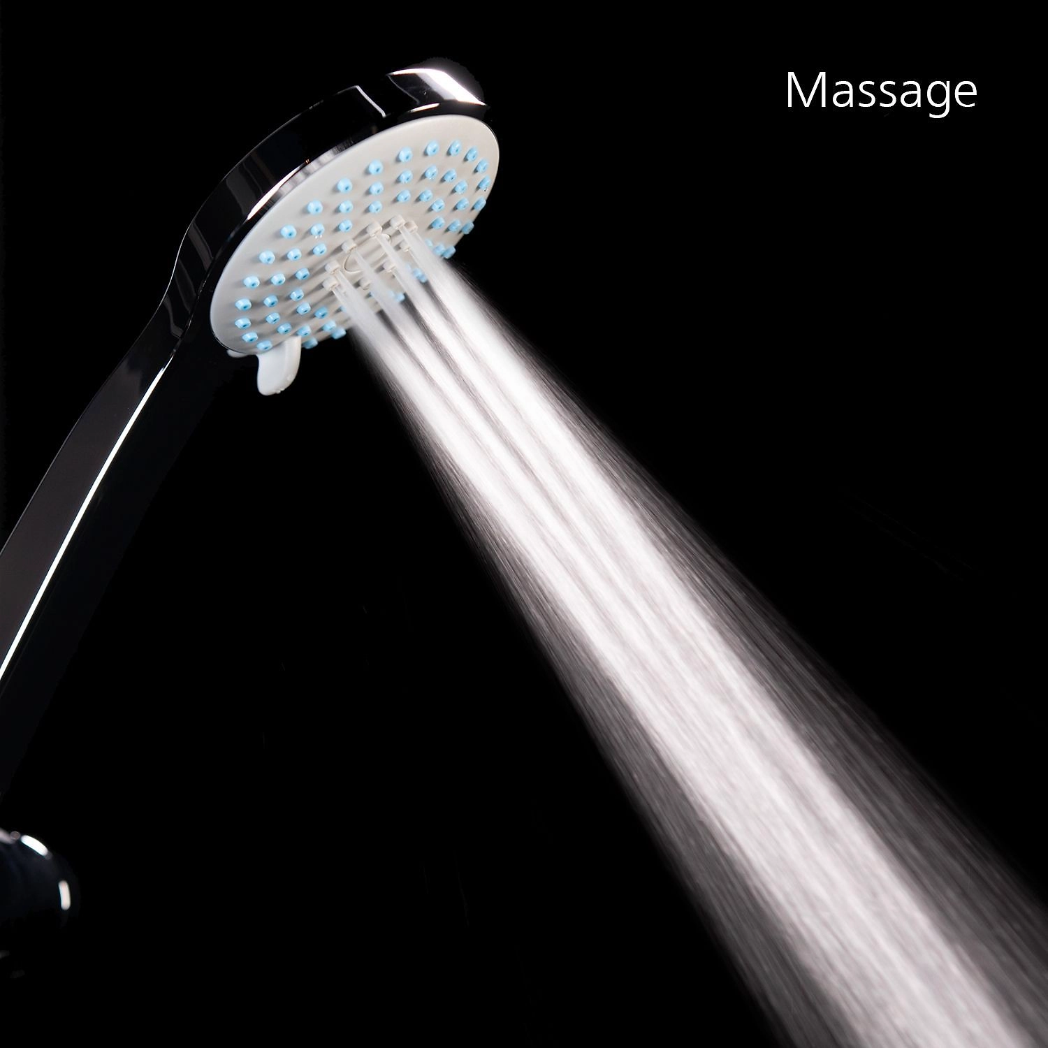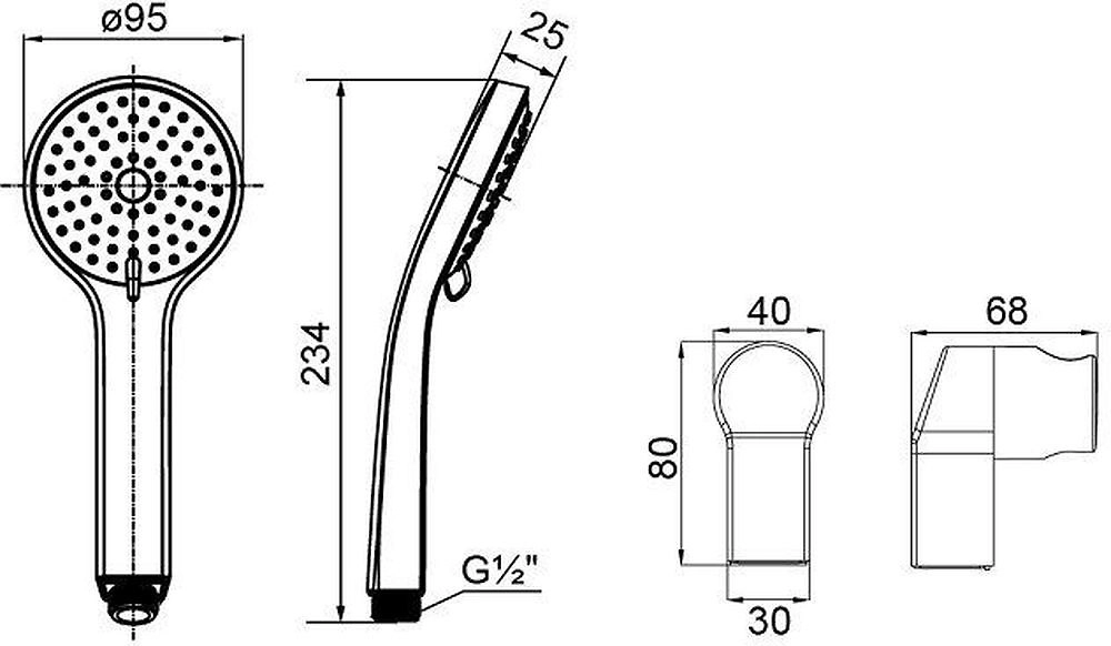 Ручная лейка из ABS-пластика с 3 режимами, рычажное переключение режимов, цвет хром, диаметр 95 мм. Шланг из ПВХ в оплетке из нержавеющей стали 150 см, поворотный держатель для лейки