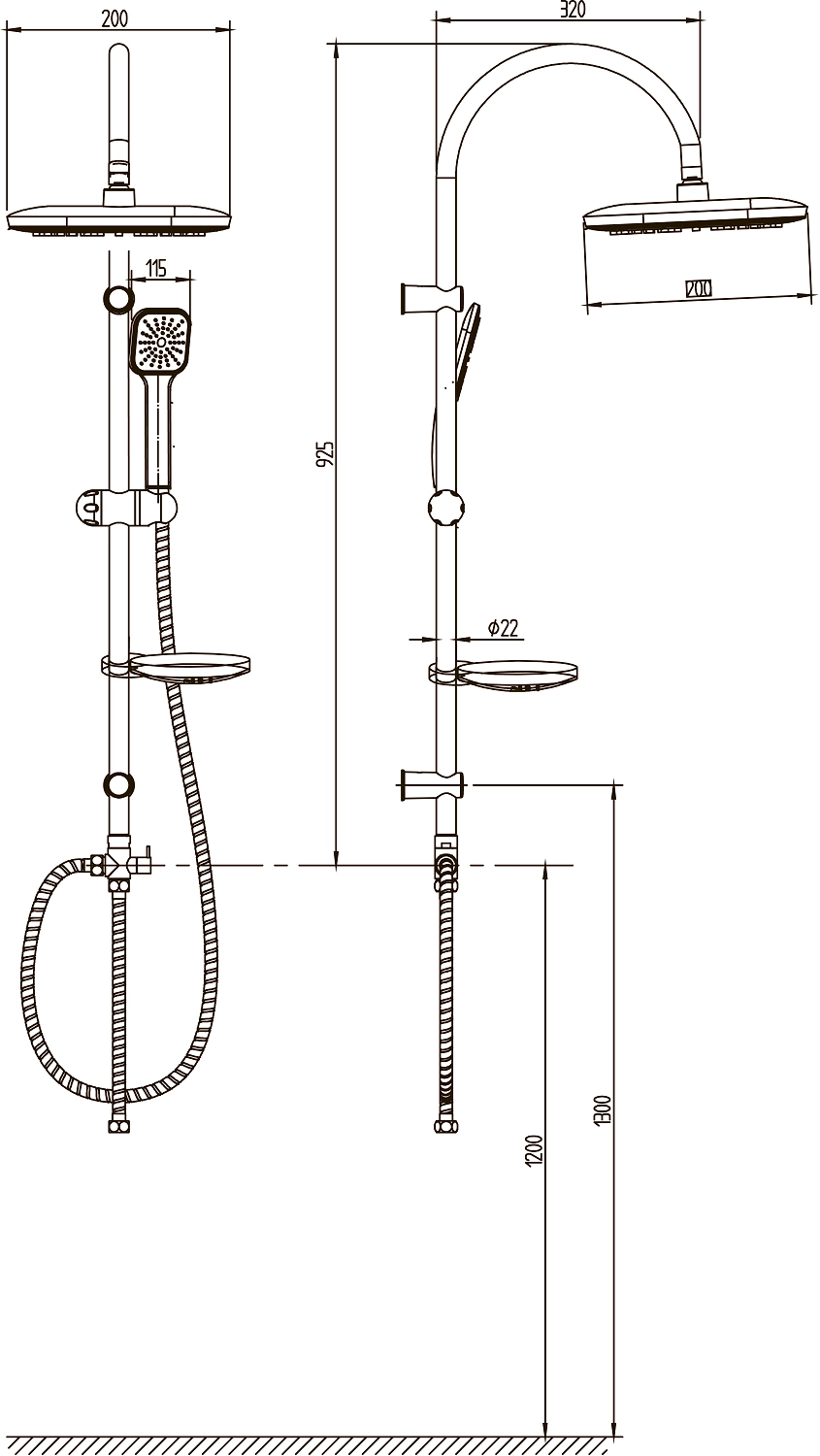 Душевой гарнитур NEVADA с верхним душем d200 мм, нержавеющая сталь, хром