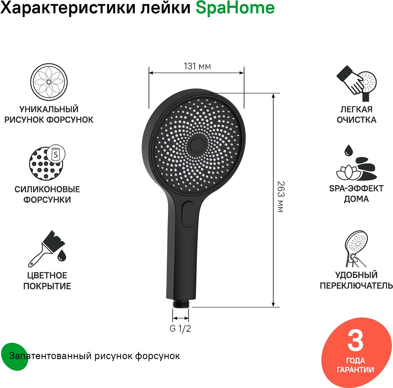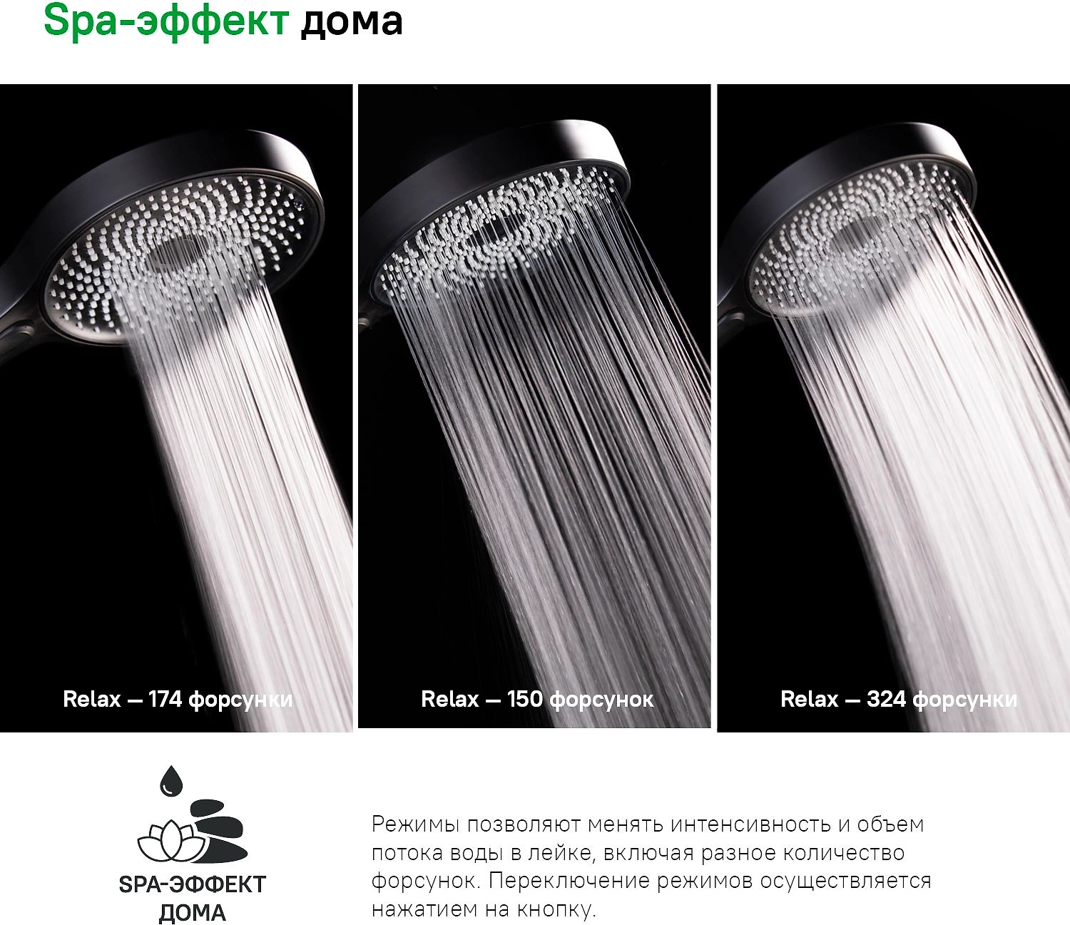 Душевая лейка IDDIS SAVOR SAVF30BI18 - 3 режима, ABS-пластик, белые силиконовые форсунки, диаметр 130 мм, цвет черный матовый, кнопочное переключение.