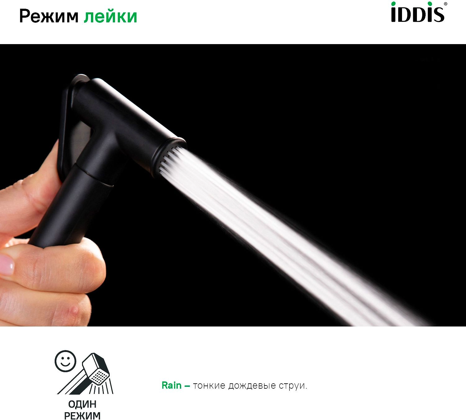 Гигиеническая лейка IDDIS IDD5BLGI20 - 1 режим (Rain), диаметр 21,5 мм, латунь. Цвет черный матовый.