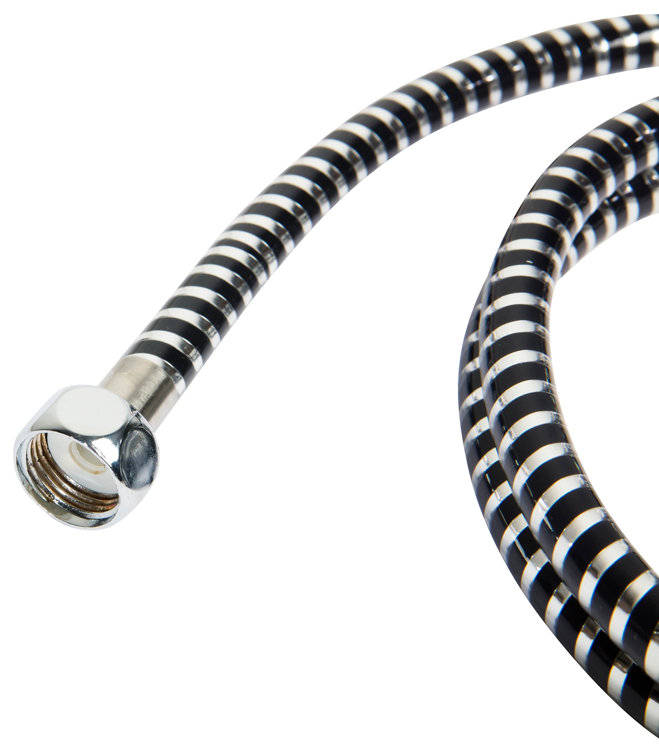 Универсальная модель шланга выполнена из высококачественных материалов, отличающихся практичностью и долговечностью. Гибкий душевой шланг из ПВХ в оплетке из нержавеющей стали с хромированной гайкой на одном конце и фитингом для подключения душевой лейки на другом.