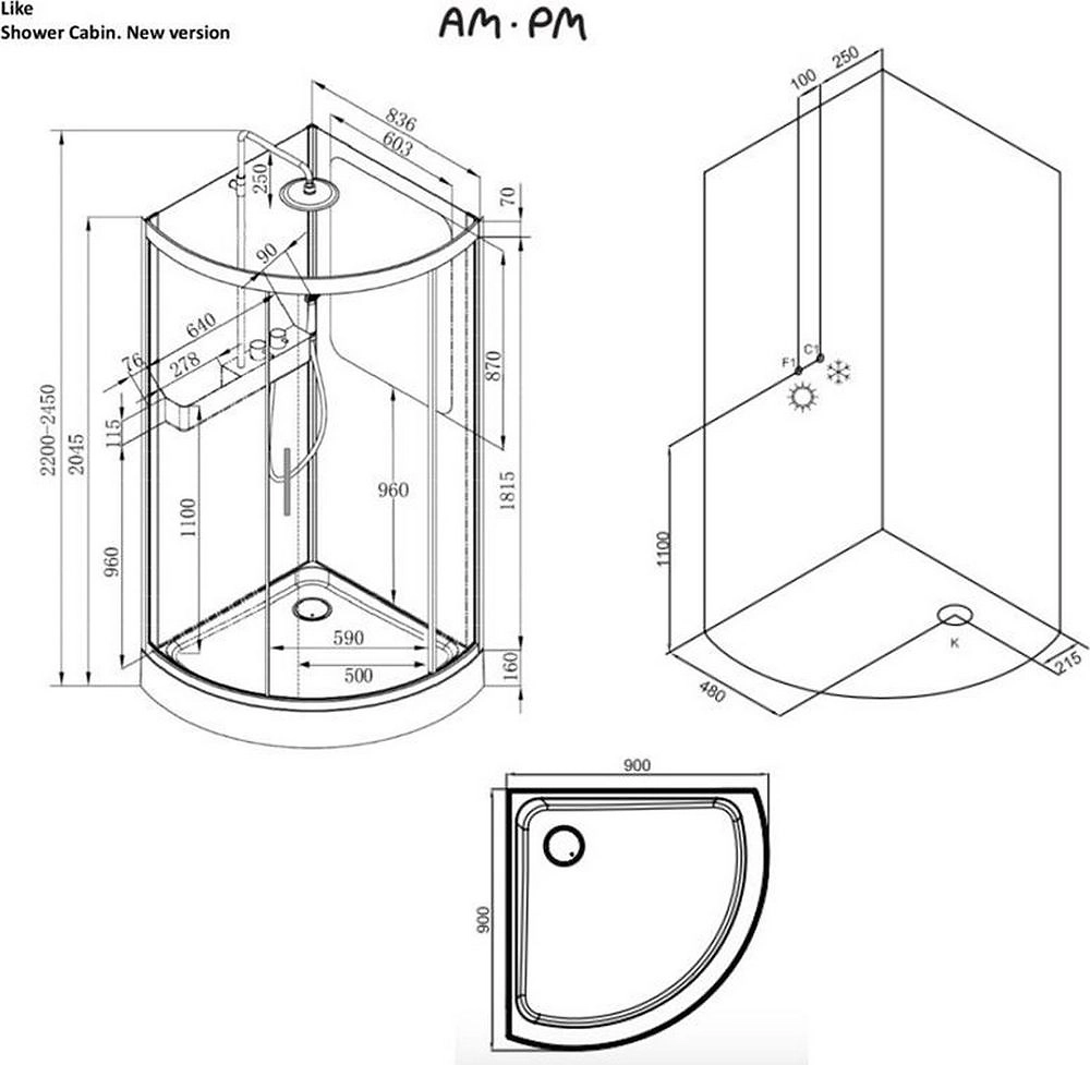 Душевая кабина AM.PM Like 90х90х245 см - готовое решение для санузлов с современным дизайном.