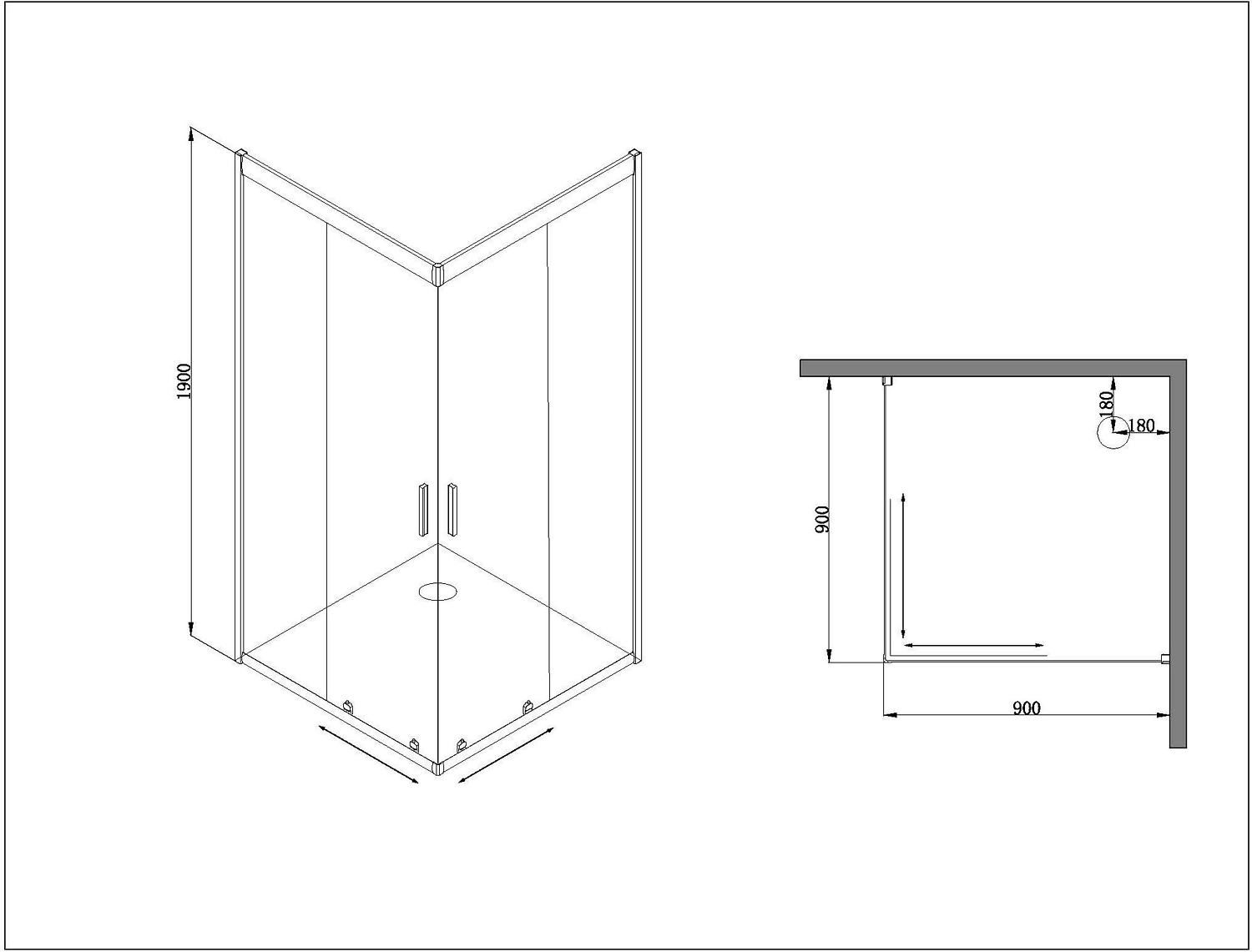 Душевой уголок AM.PM GEM W90G-403-090MT 190x90x90 см