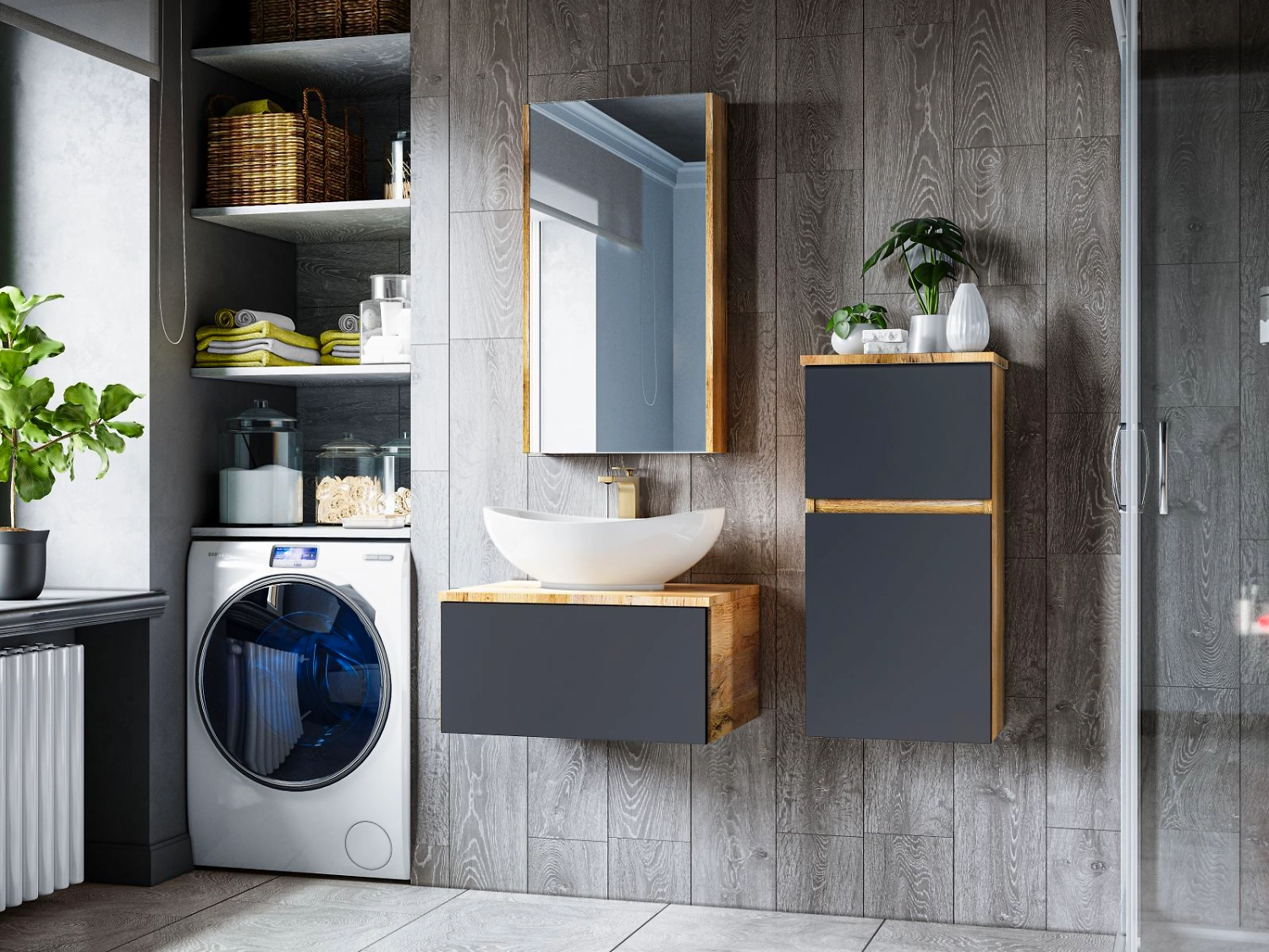 Пенал навесной MISTY Ива 40х80 см МДФ графит/каштан